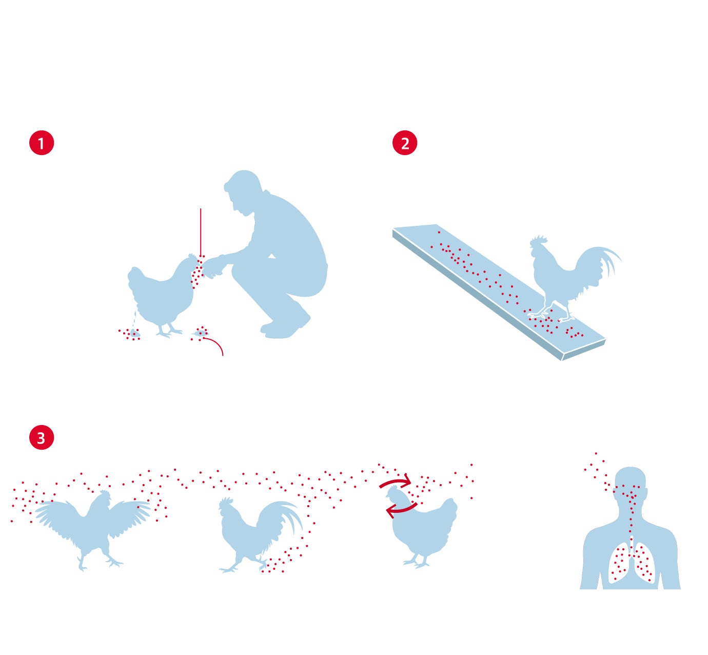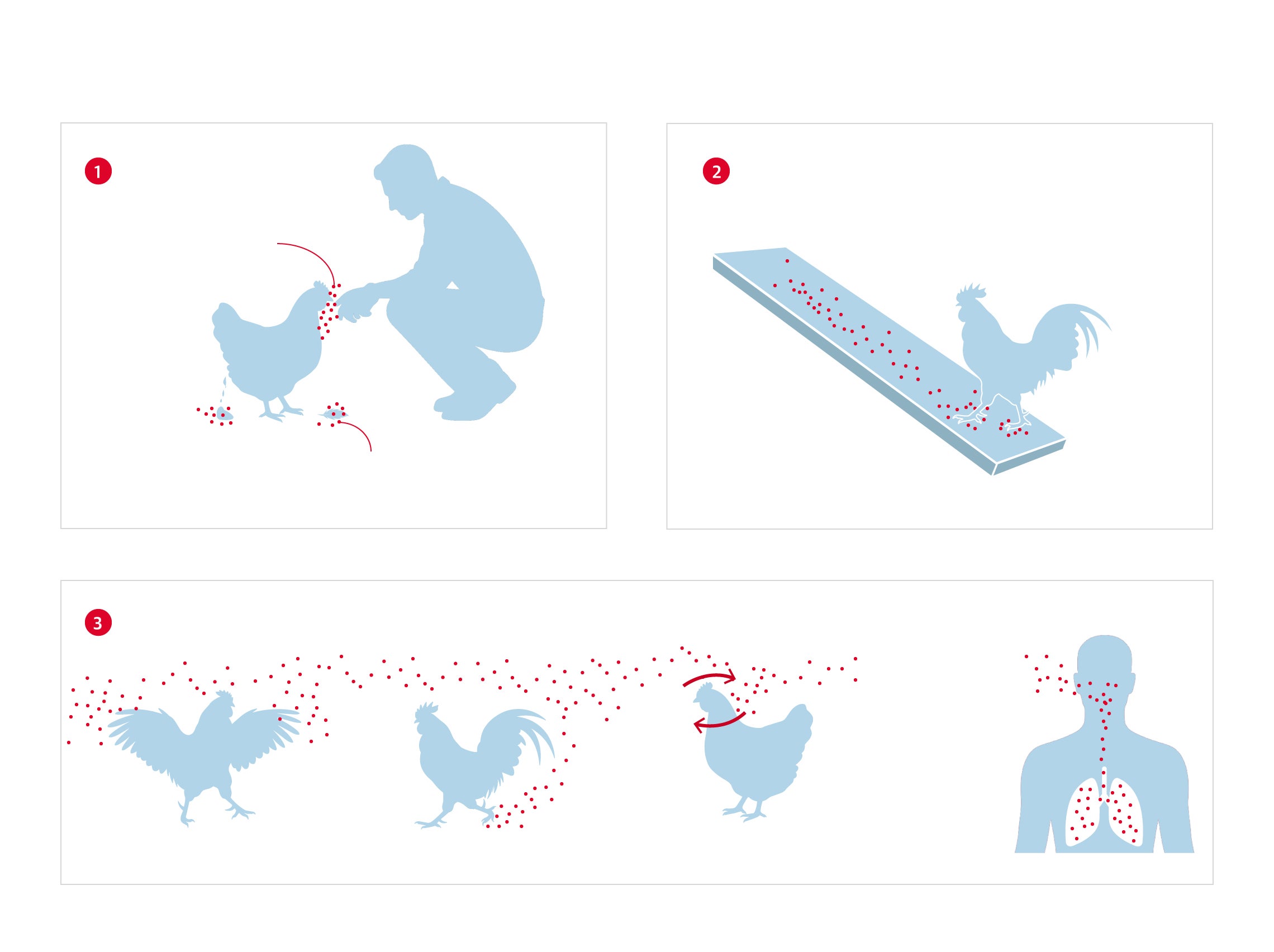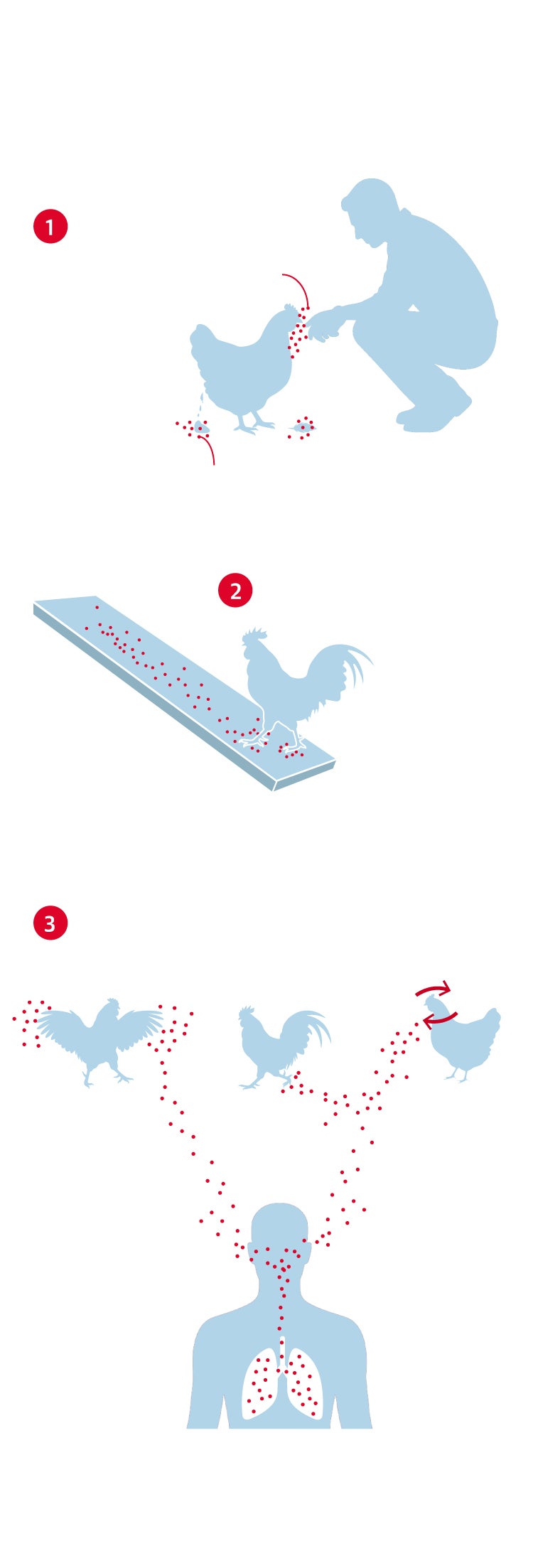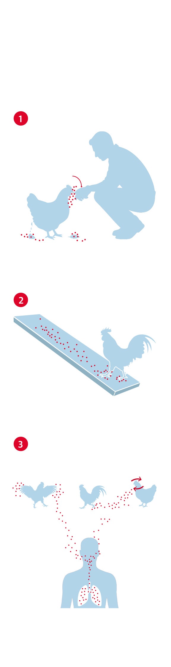 Las infecciones por gripe aviar en humanos son raras, pero posibles. A través del contacto directo o por superficies contaminadas.