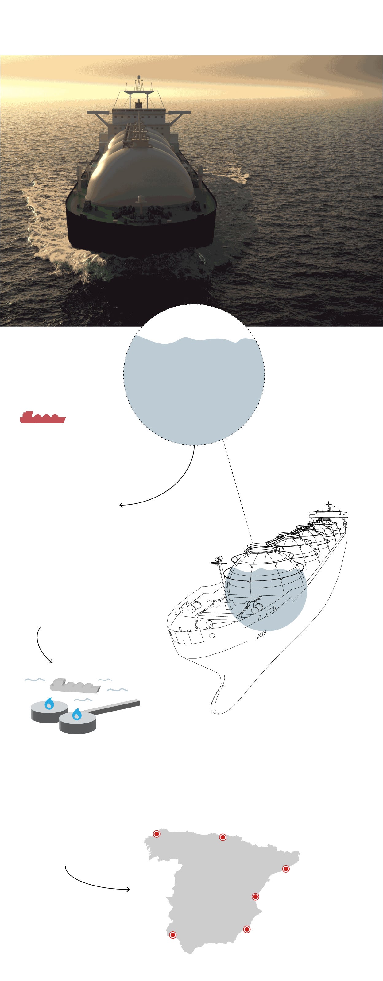 Todo el gas que no llega vía gasoducto (Argelia), lo hace a través de estos barcos, que pueden proceder de cualquier punto productor