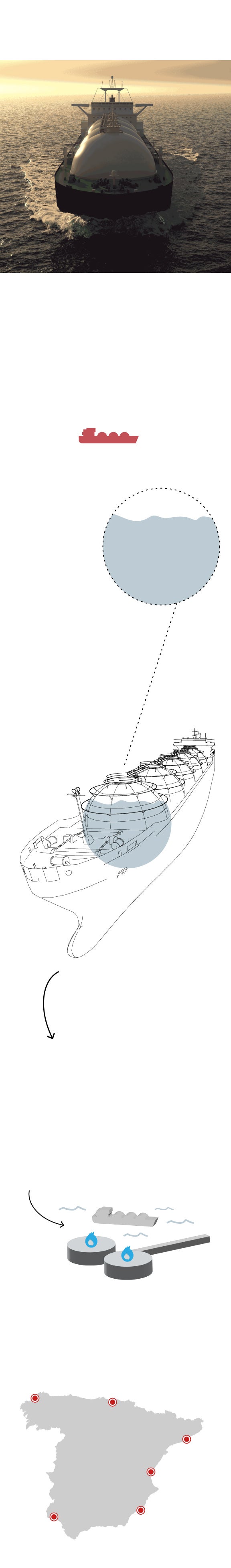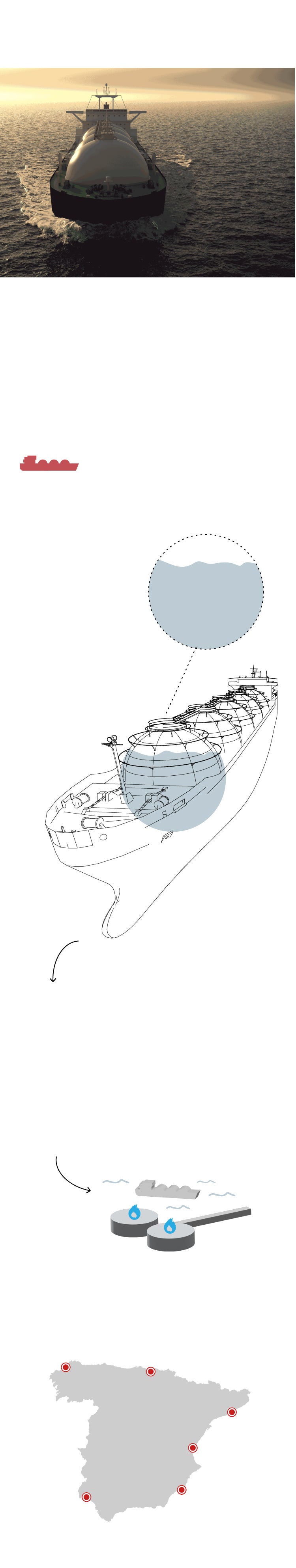 el gas natural extraído se limpia y se transforma en un líquido, enfriándolo a -160ºC. Así es estable a presión