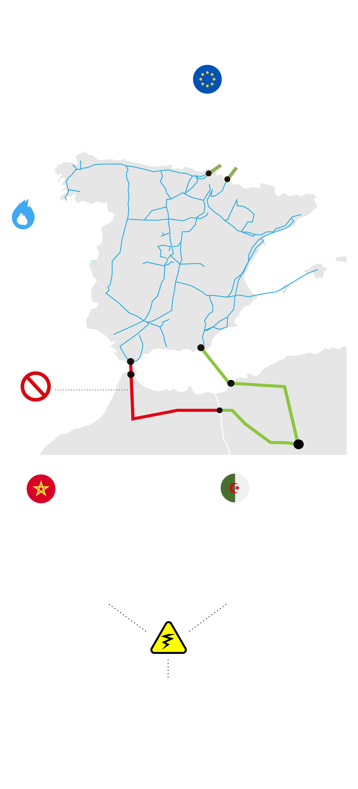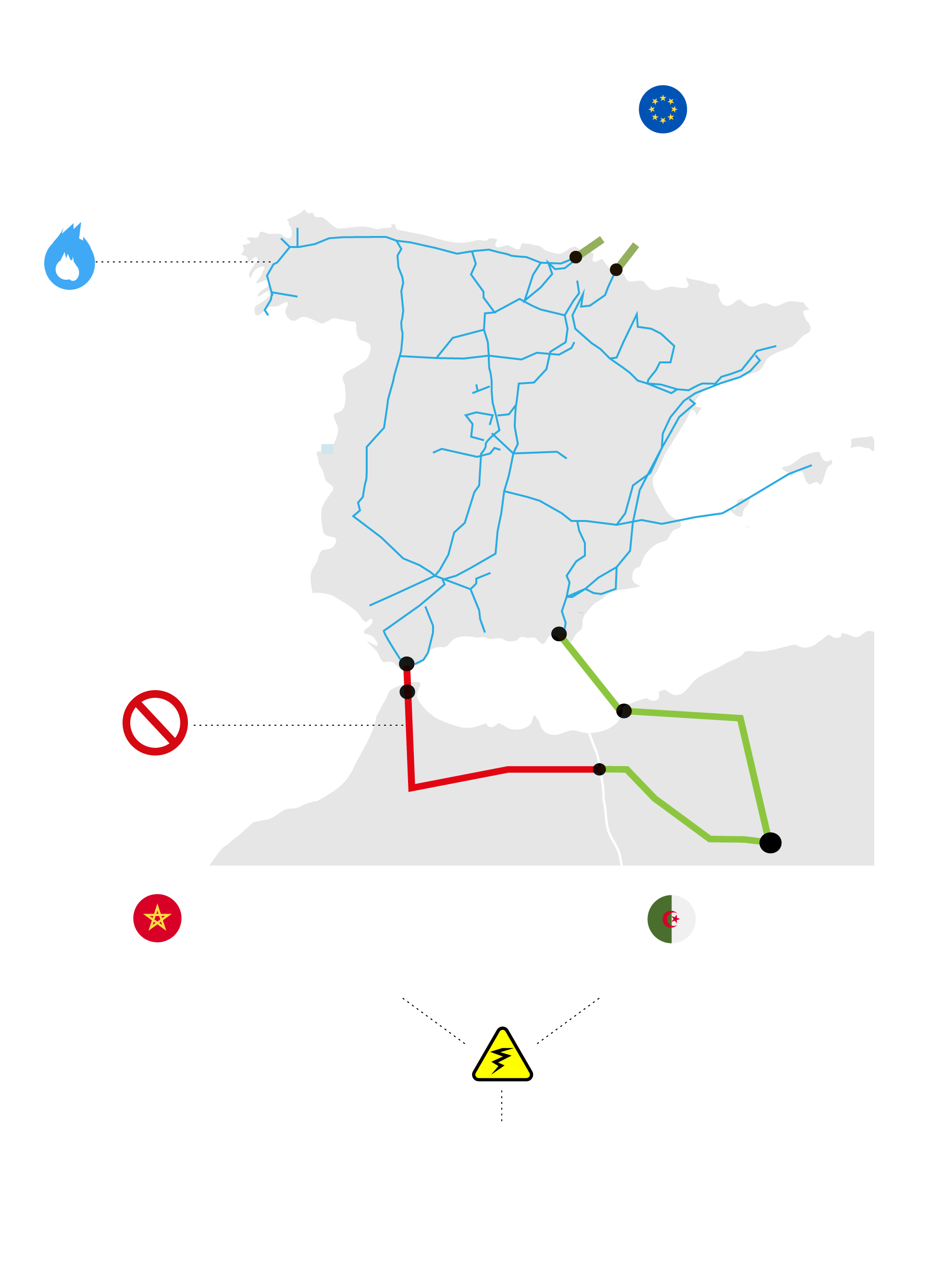 La Península se convirtió en epicentro de todas las miradas: España ostenta seis plantas regasificadoras, un 25% de todas las activas en Europa. A esos puertos puede llegar el gas desde cualquier parte del mundo, sin depender de Rusia, para ser descargado y distribuido entre los países. En apenas dos meses, la importación de gas española ha cambiado por completo: si Argelia era hasta el año pasado el principal proveedor (con más de un 40% del total), ahora es Estados Unidos (con más de un 30%). Y, sobre todo, España sigue negociando con otros países hasta ahora minoritarios (Egipto, Nigeria, Catar, etc.), para conseguir suplir el gas que ya no llega de Argelia, o el que pueda faltar de Rusia el próximo invierno.
