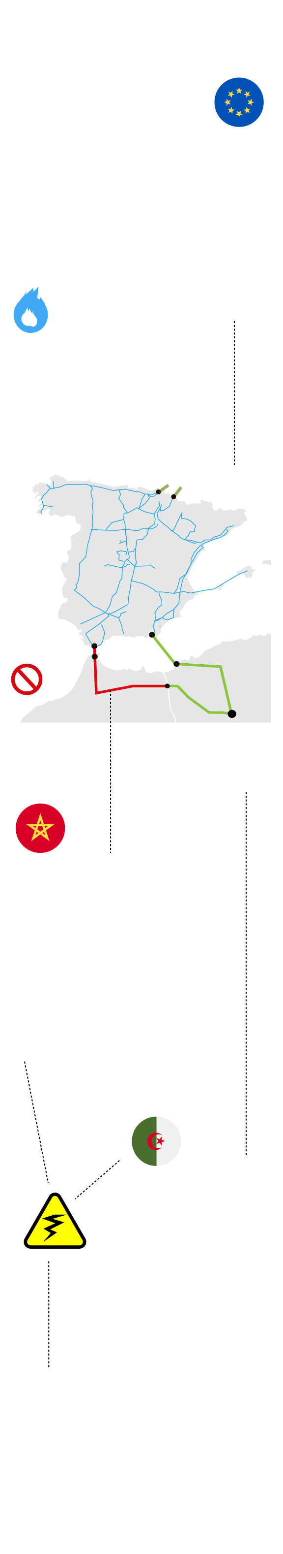 Las sanciones a Rusia provocaron un primer efecto 'boomerang' cuyo principal impactado fue Europa. Putin advertía, día tras día, de un posible corte del gas y del petróleo que llega a la UE. Sería el peor escenario posible. Y ahí, ante la amenaza, germinó un inicio en el cambio estratégico de todo el continente, en general, y de España, en particular. Hasta el verano pasado, se encontraba cómoda con el suministro de Argelia (vía directa por Mezgas con Almería) o a través de Marruecos. Sin embargo, la ruptura de relaciones entre argelinos y marroquíes provocó el cierre del gasoducto del Estrecho de Gibraltar, clave para garantizar el suministro de toda la Península. Sin embargo, la Península Ibérica es un verdadero cuello de botella. Por mucho gas que reciba, no puede exportarlo a la UE nada más que a través de dos gasoductos en País Vasco y Navarra, cuya capacidad es muy inferior al gas importado. Aunque ahora funcionan a pleno rendimiento por las peticiones de esta materia prima de otros países vecinos.