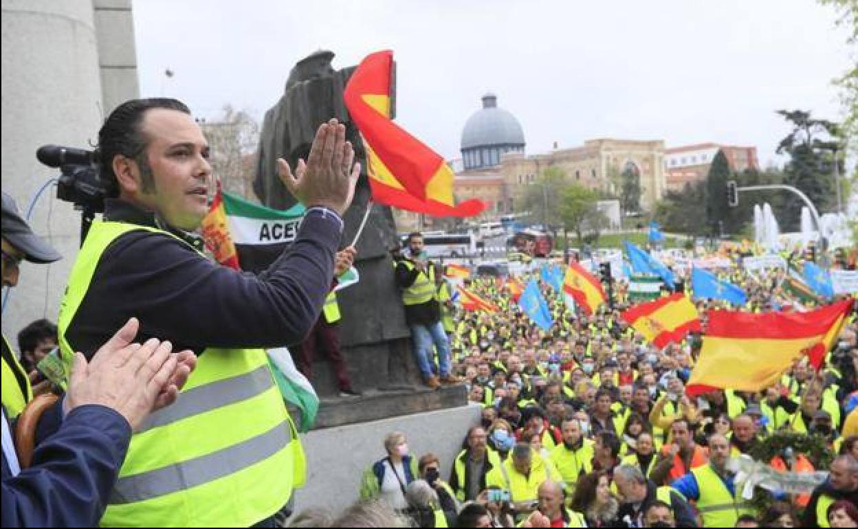 El líder de la Plataforma para la Defensa del Transporte, Manuel Hernández, en la huelga del pasado marzo. efe