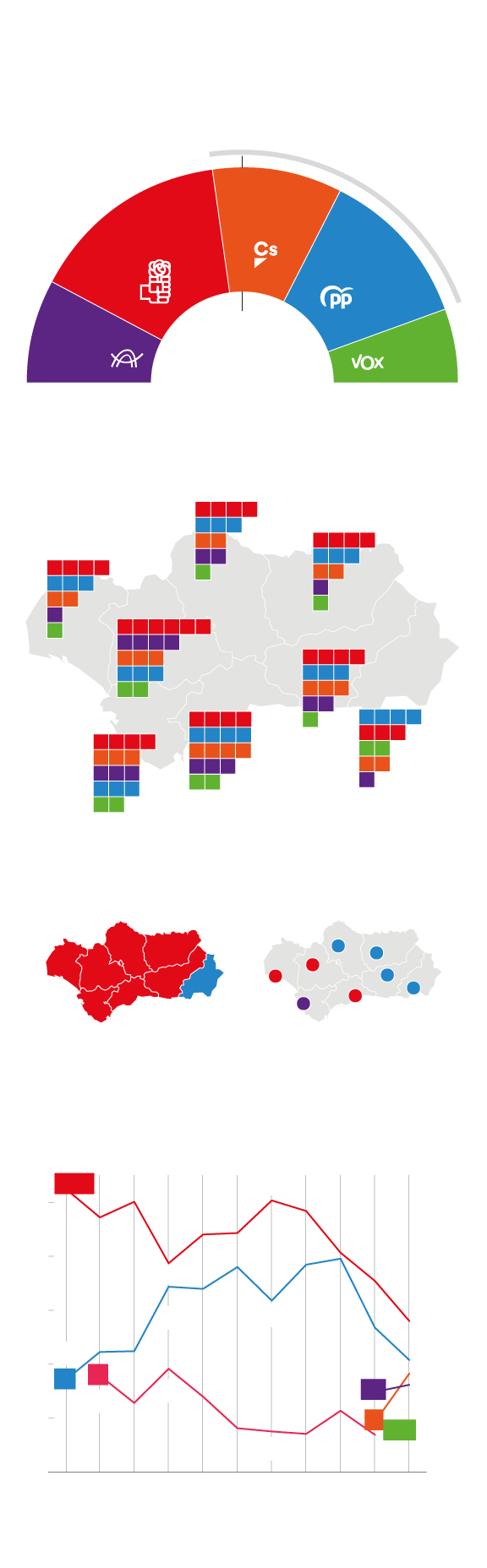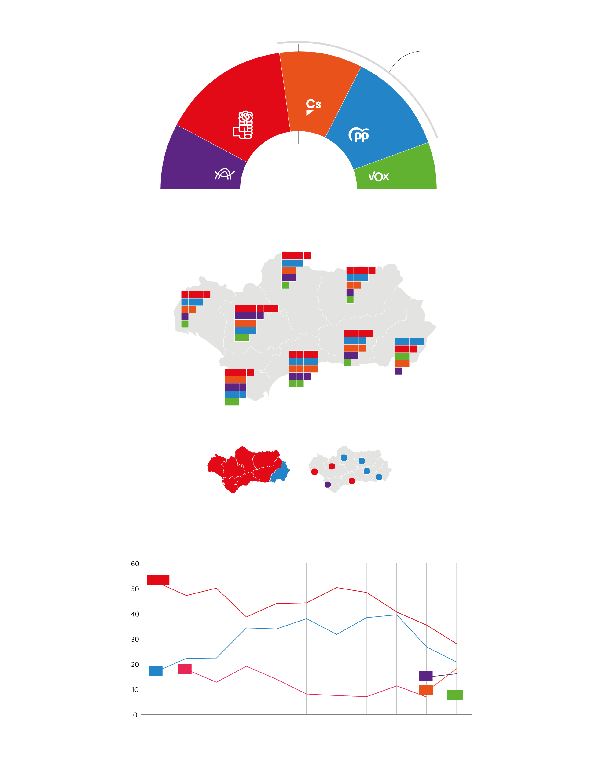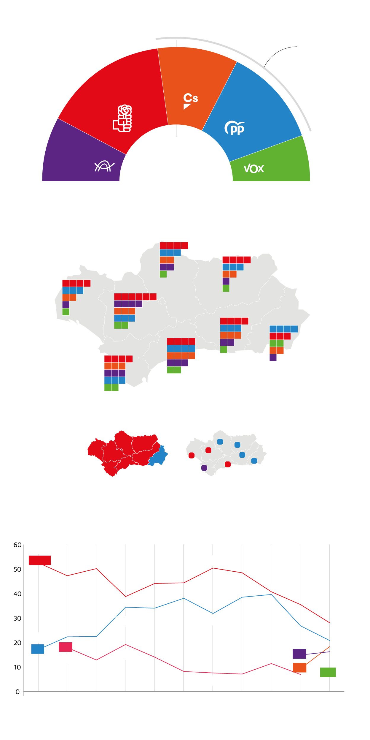 Más de 6,6 millones de andaluces están llamados a votar este domingo en las elecciones a la Junta. Es una cifra demasiado elevada para que los grandes partidos desdeñen su impacto nacional. Andalucía es la comunidad que más diputados aporta al Congreso de los Diputados, 61, un 17,4%. El recuento de esta noche no permitirá prejuzgar el resultado de las próximas generales pero sí puede dar pistas sobre cuán profundo es el clima de cambio de ciclo a seis meses de un nuevo año electoral. Eincluso acrecentarlo.