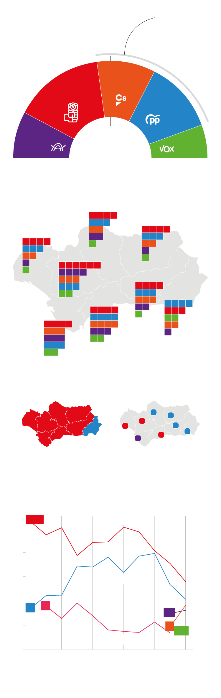 La posibilidad de verse abocados a un pacto con Vox –que aunque quizá menos de lo esperado incialmente, mejorará sus resultados de 2018– sigue existiendo. Santiago Abascal y su candidata, Macarena Olona, han dejado claro que aunque el PP solo necesite un escaño suyo para superar la investidura exigirán entrar en el Ejecutivo. Pero los populares confían en quedar tan cerca de la mayoría absoluta, situada en 55 parlamentarios, que a la hora de la verdad no puedan cumplir esa amenaza so pena de ser percibidos como una fuerza obstruccionista.