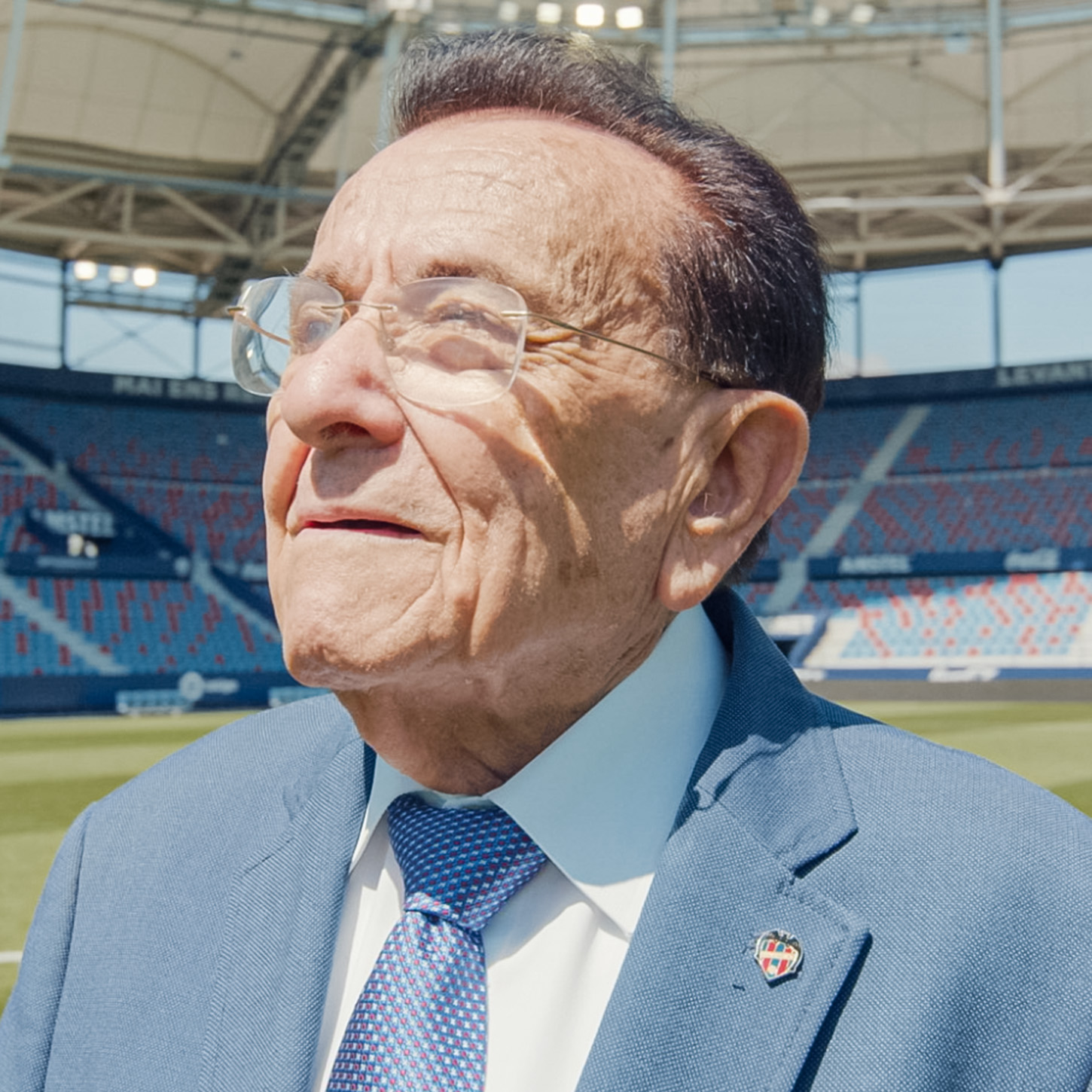 Enamorado del Levante UD desde los 14 años, Paco Fenollosa es el presidente de honor del club y una institución para toda la familia granota, que ve representada en él la historia de su equipo