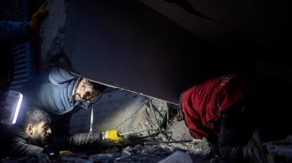 Los muertos se multiplican a medida que transcurren las horas, pero lo peor es ahora mismo la incertidumbre sobre el número de personas atrapadas bajo millones de toneladas de escombros, en edificios que se han plegado sobre sí mismos, puentes desmoronados y casas de seis y siete alturas reducidas a montañas de cascotes. Los desaparecidos se cuentan por miles, según informaciones de los medios locales. Cuarenta y cinco países, entre ellos diecisiete europeos, han movilizado ya la ayuda que necesitan turcos y sirios. De España han despegado dos aviones con asistencias y ayuda humanitaria y se han puesto en marcha unidades de auxilio. Estados Unidos ha enviado también decenas de equipos de rescate urbano. Incluso, Rusia y Ucrania, enfrentados en una encarnizada guerra, han desplazado brigadas de emergencia. Hay en marcha un operativo másivo de búsqueda y rescate. Unos 79.000 efectivos no han dejado de trabajar durante la madrugada con perros guía, grúas, excavadoras y todos los medios a su alcance, que se revelan insuficientes, para tratar de salvar el mayor número de vidas posibles.