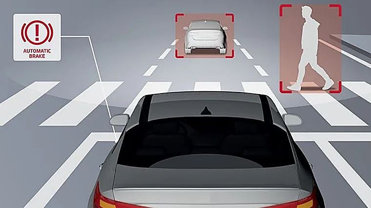 Previene una posible colisión con un peatón o un vehículo en un ángulo muerto de visión del conductor mediante avisos ópticos y acústicos, pudiendo llegar a actuar sobre la dirección o incluso detener el vehículo en caso de riesgo de atropello o colisión.