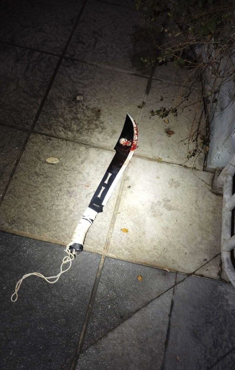 De nuevo, la víctima le insta a marcharse. Pero el agresor comienza a perseguirle con el machete.