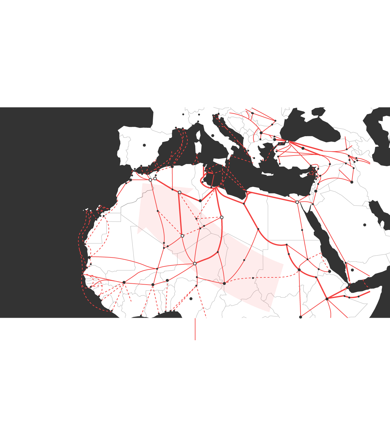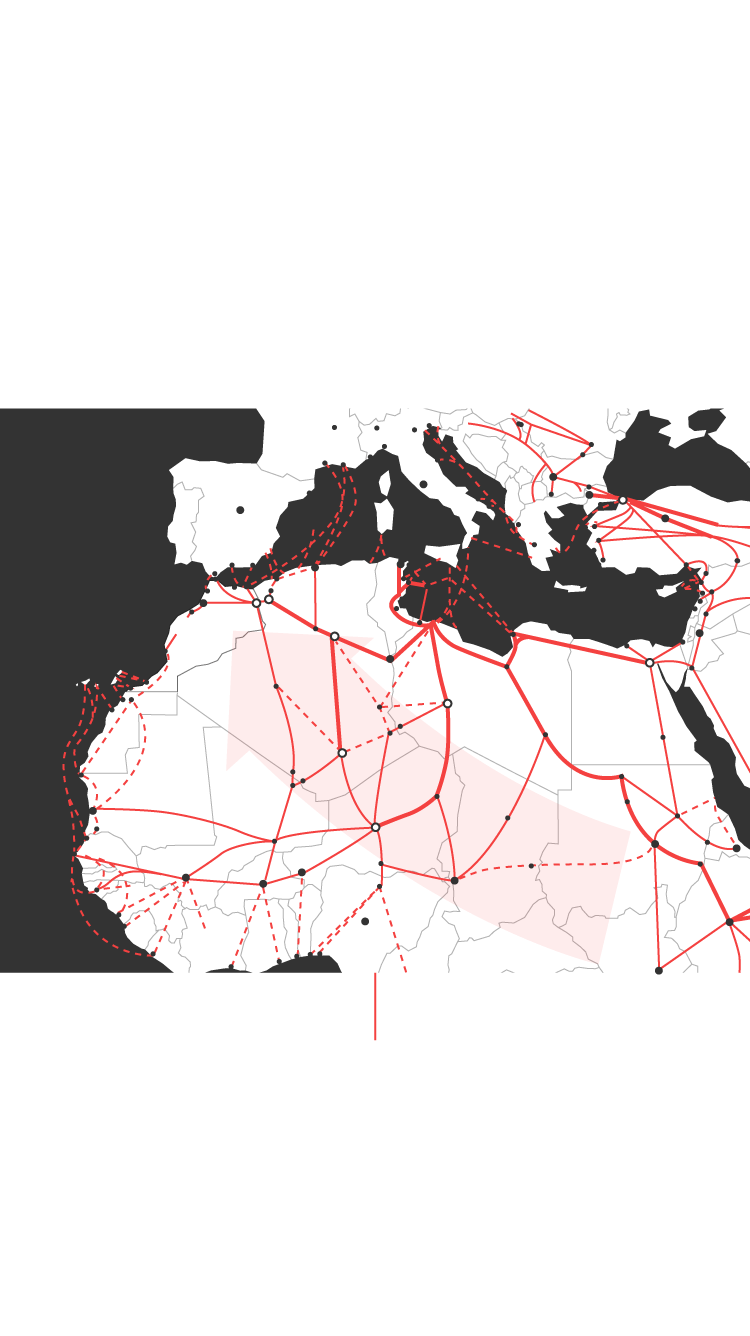 Para la mayor parte de los migrantes irregulares, el viaje transcurre a lo largo de una serie de rutas que los llevan desde sus países de origen, pasando por países de tránsito hasta las zonas fronterizas con los países de destino, donde se producen los intentos de cruce.