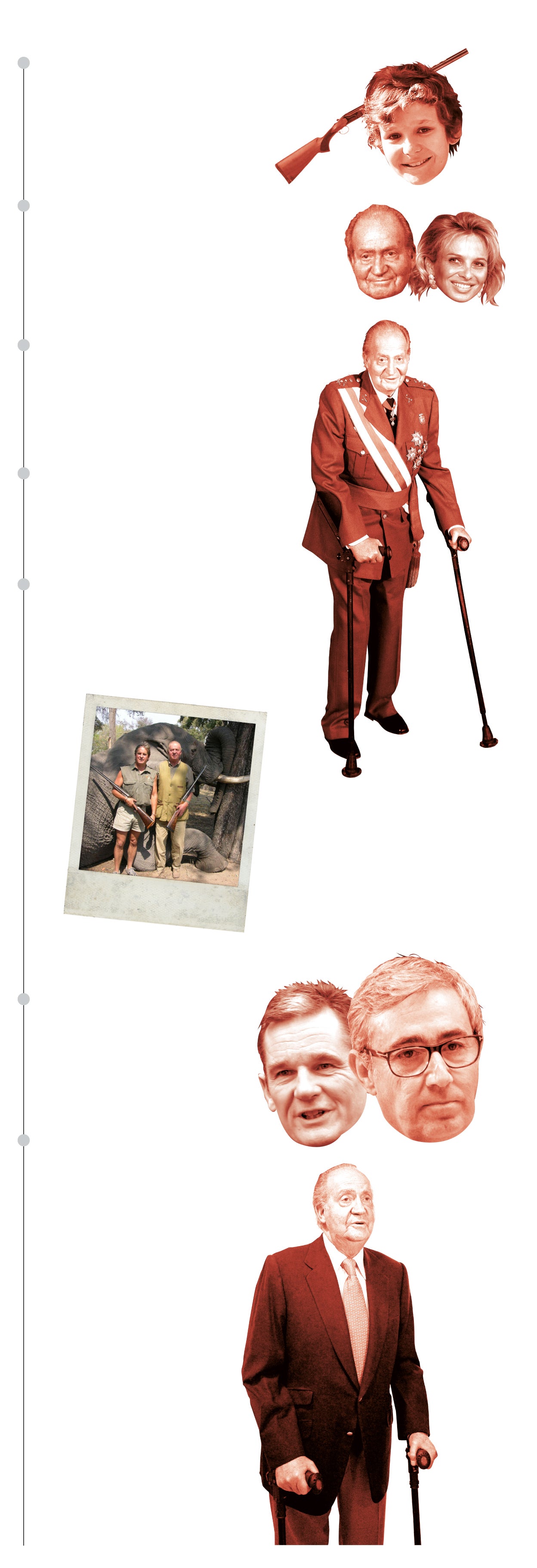 Nadie podía imaginar que aquel sábado 14 de abril, aniversario de la II República, los españoles iban a olvidarse por un rato de la preocupante situación económica de un país que había vuelto de Semana Santa con la amenaza de un rescate europeo, con caídas históricas en las bolsas, con la primera de riesgo por encima de los 400 puntos y con el paro superando el 23%. Ese sábado por la mañana se conocía la noticia de que Juan Carlos I había tenido que ser operado de urgencia en Madrid esa madrugada después de que la noche anterior se rompiera por tres lados la cadera en un campamento de lujo para cacerías en el delta del Okavango, en Botsuana. El emérito se había caído festejando la caza el miércoles 11 de un elefante cuya muerte (valorada en 100.000 dólares) le había regalado su amigo y 'mecenas' del viaje, el empresario saudí Mohamed Eyad Kayali.