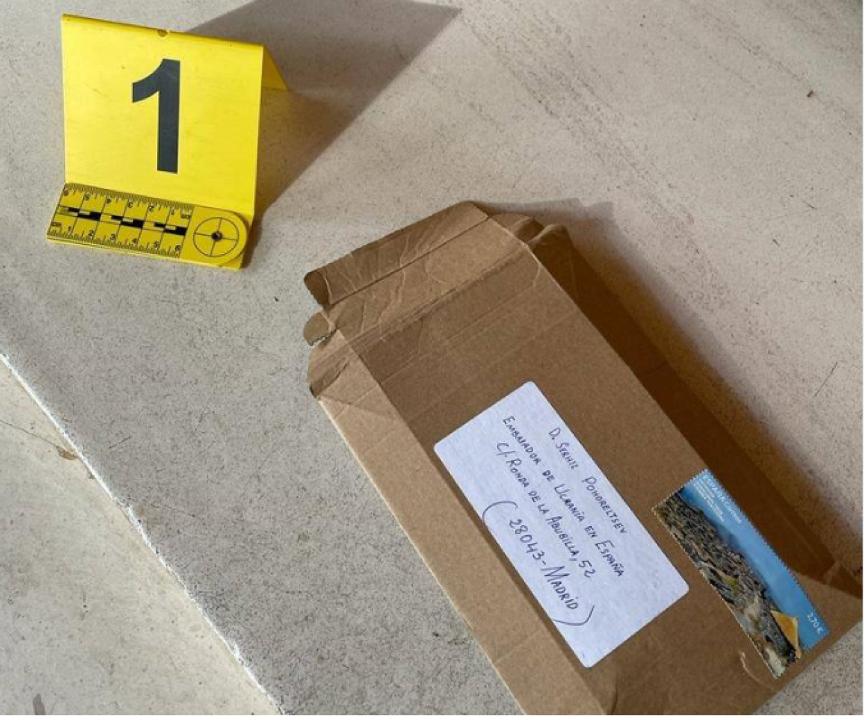 Carta bomba recibida en la embajada de Ucrania en Madrid. colpisa
