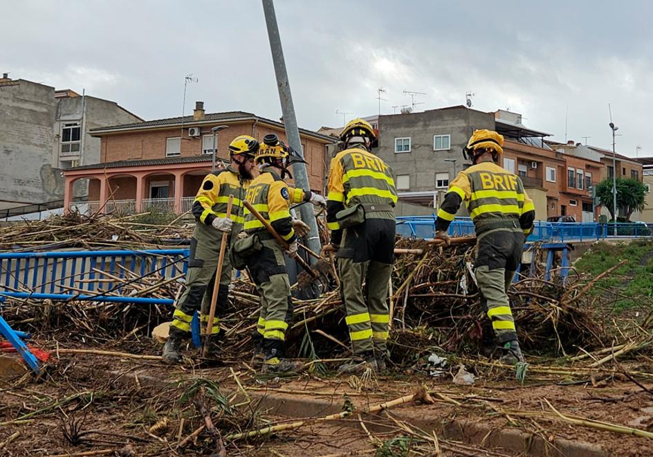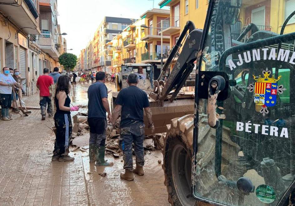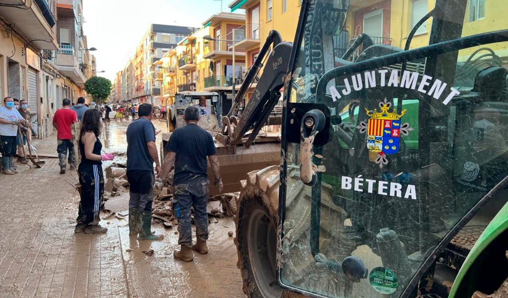 La prioridad fue restablecer las comunicaciones. Con maquinaria pesada se comenzaron a retirar troncos y obstáculos que impedían el paso hacia los pueblos vecinos, especialmente por el camino de Albal, vital para la conexión comarcal. En paralelo, el consistorio habilitó el pabellón de Plalesa para acoger a vecinos que habían quedado aislados en sus puestos de trabajo y no podían regresar a casa. Ese fue el primer gesto de solidaridad, antes incluso de ser conscientes de la magnitud de lo que estaba ocurriendo en la comarca.