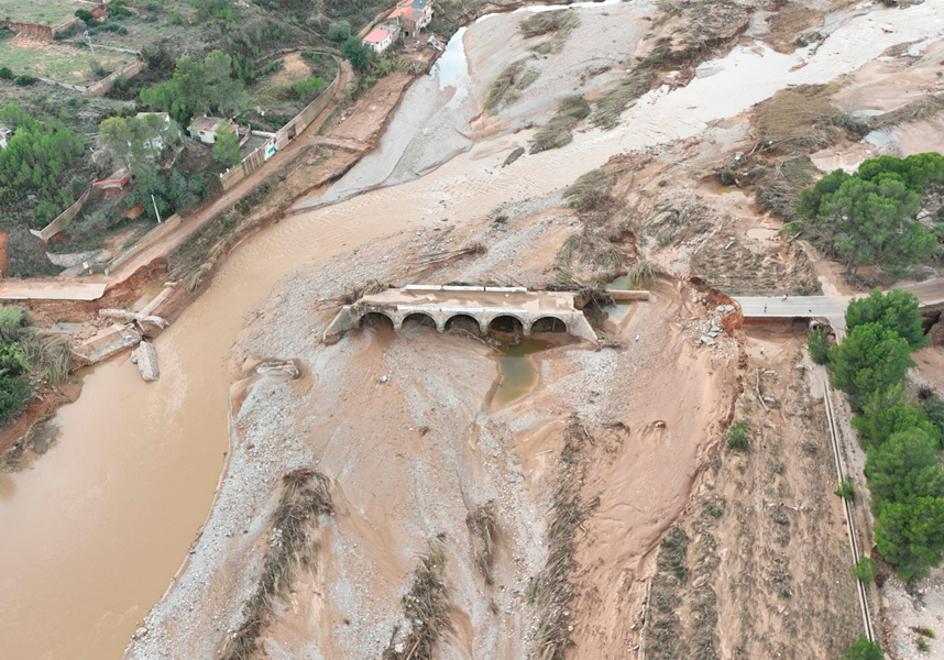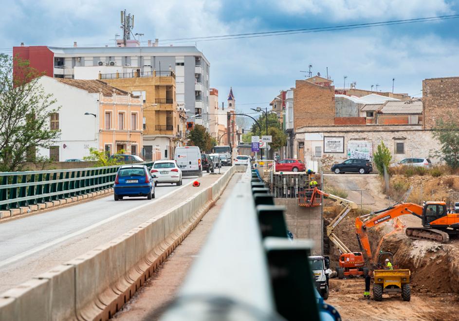 Uno de los puntos más críticos fue la CV-33, la autovía hacia Valencia, donde el puente sobre el barranco del Poyo se desplomó tras el paso del agua. Su reconstrucción fue prioritaria para restablecer la conexión con la capital y garantizar el tránsito de miles de vehículos diarios. El nuevo puente, reforzado y adaptado para resistir fenómenos climáticos extremos, fue abierto al tráfico en tiempo récord.