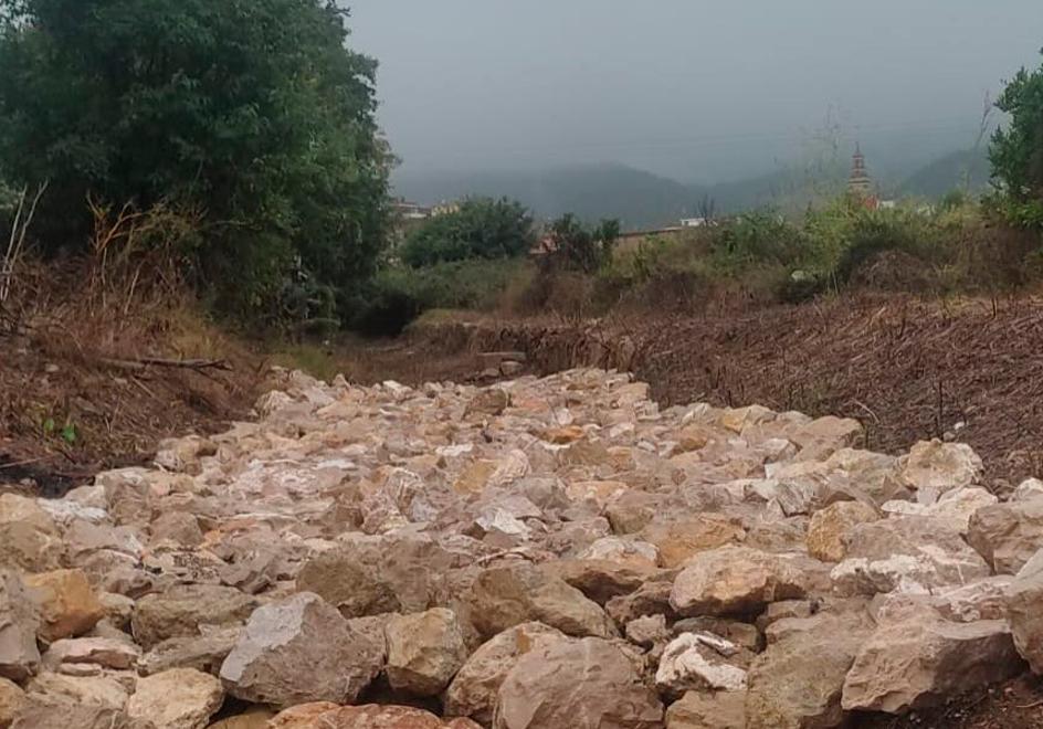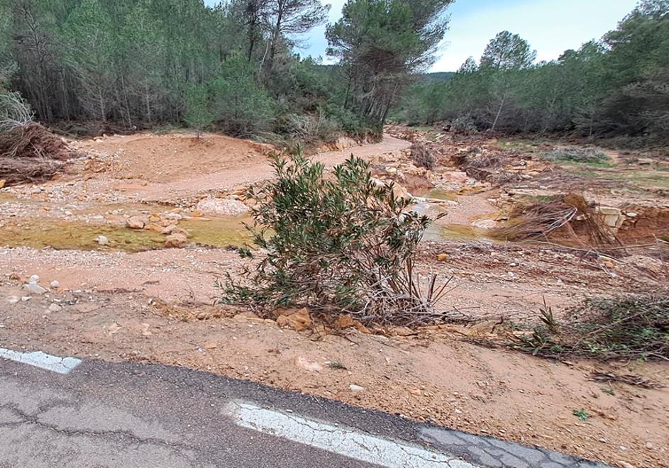 Uno de los problemas más graves fue el estrechamiento del barranco, casi aguas abajo del pueblo. Para ello, una de las medidas que quiere tomar el Ayuntamiento en la reconstrucción es ampliar el cauce, con el fin de eliminar ese tapón. «El tramo final es muy estrecho y al no tener salida por su cauce, el agua salió por un lateral, reventó muros y afectó a dos viviendas que están debajo de una pista deportiva, cayeron los muros... En las parcelas de esas viviendas todo lo reventó», mantiene la primera edil.