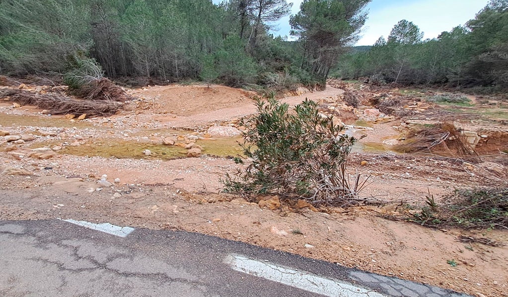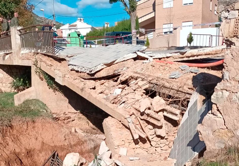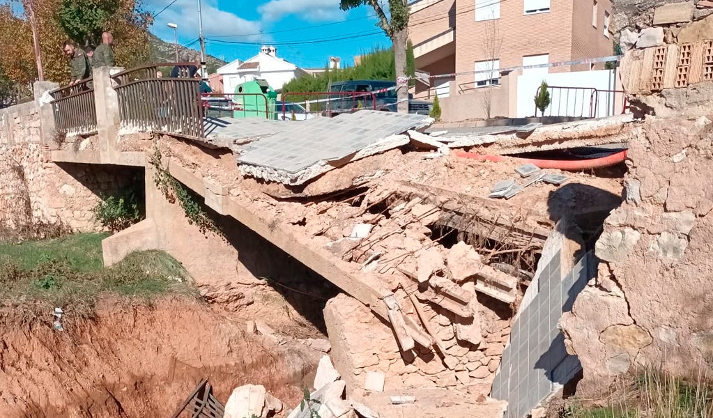 En Sot de Chera resultó también dañado el puente de acceso al cementerio, además de la pasarela peatonal que conecta las calles Pocillo y Pedregal con el paseo Fuente Tío Fausto y Paraje el Cerrao.