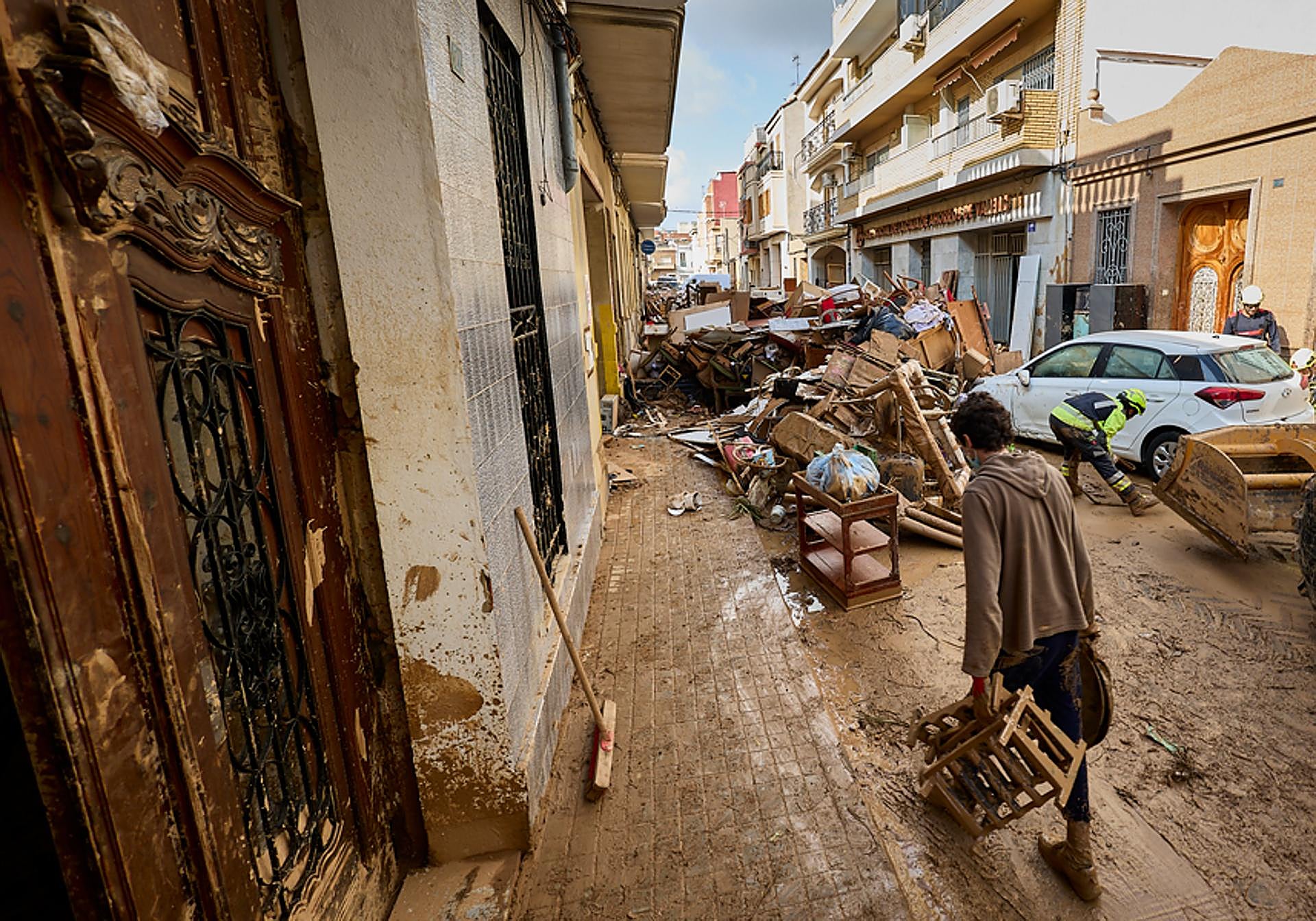 Entre los vecinos, la mezcla de alivio y cansancio es evidente. Montse, vecina de la calle Palleter, recuerda aquella noche con un escalofrío. «El ambiente era raro, no llovía, pero se notaba algo en el aire. Cuando el agua empezó a venir por la calle, en veinte minutos ya estaba por encima de un metro. El ascensor se quedó abajo, lo perdimos todo». También Isabel, residente en la calle Doctor Perpiñá, revive con angustia los recuerdos del agua subiendo por las ventanas y los gritos de los vecinos. «Los del primer piso estaban en mi casa. Era un desastre ver cómo se lo llevaba todo. Mi nieto estaba solo y se quedó en pánico. Hoy va al psicólogo, poco a poco vuelve a hacer vida normal». Su testimonio muestra que la reconstrucción emocional avanza más lentamente que la física.