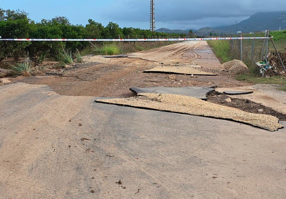 En Sueca las lluvias afectaron sobre todo a los caminos rurales. El Ayuntamiento tiene un proyecto en fase de licitación de 900.000 euros para el asfaltado de estas vías que ya fueron reparadas de forma urgente para permitir el paso.