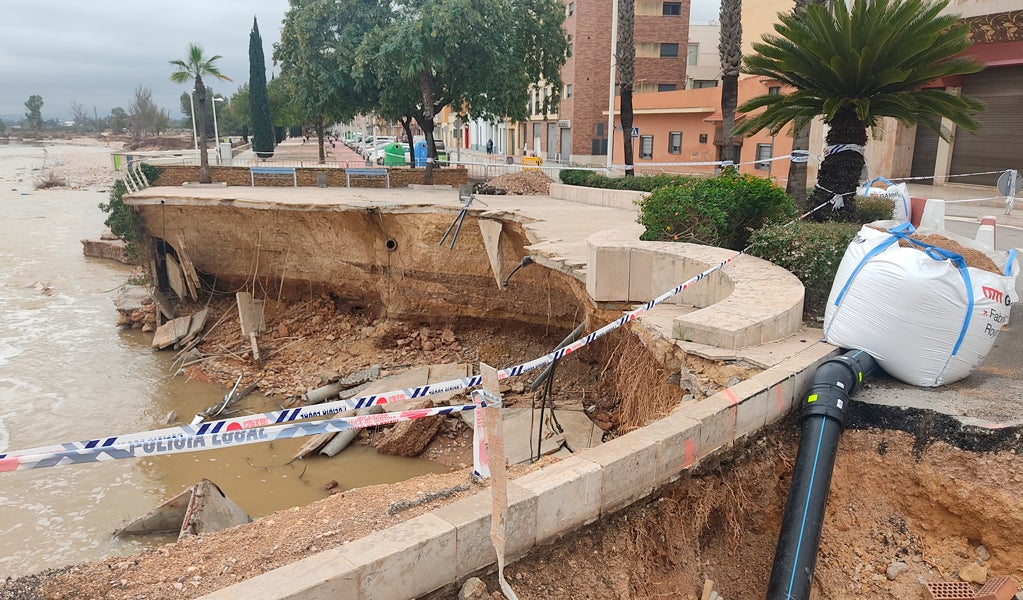 Los daños se localizaron en el polígono de l'Alteró, la marjal y el puerto, los puntos más afectados, pero con una respuesta municipal que convirtió al pueblo en un centro de ayuda para toda la comarca. El esfuerzo inmediato se centró en socorrer a los municipios más golpeados y en atender a las decenas de personas que quedaron atrapadas aquella noche en la estación de Renfe.