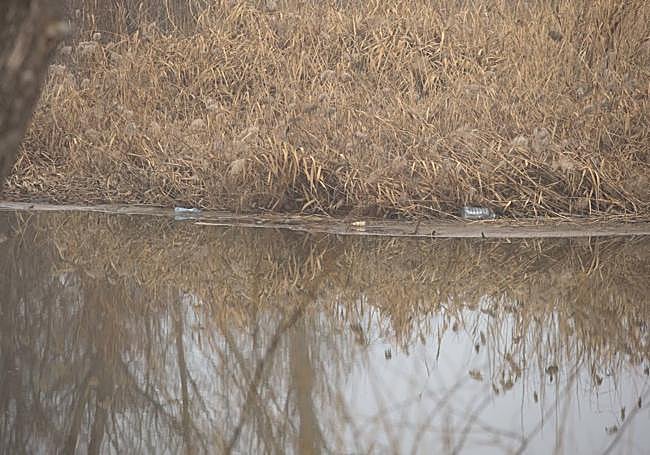 Miles de toallitas, plásticos y otros residuos arrastrados por la crecida del río quedan ahora visibles, enganchados en la vegetación, a la espera de ser retirados