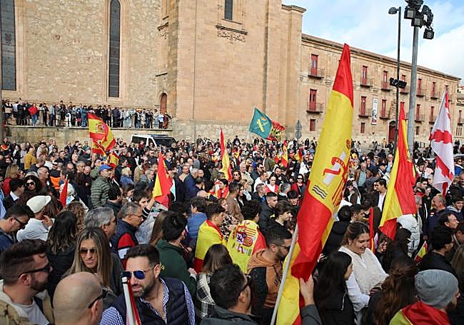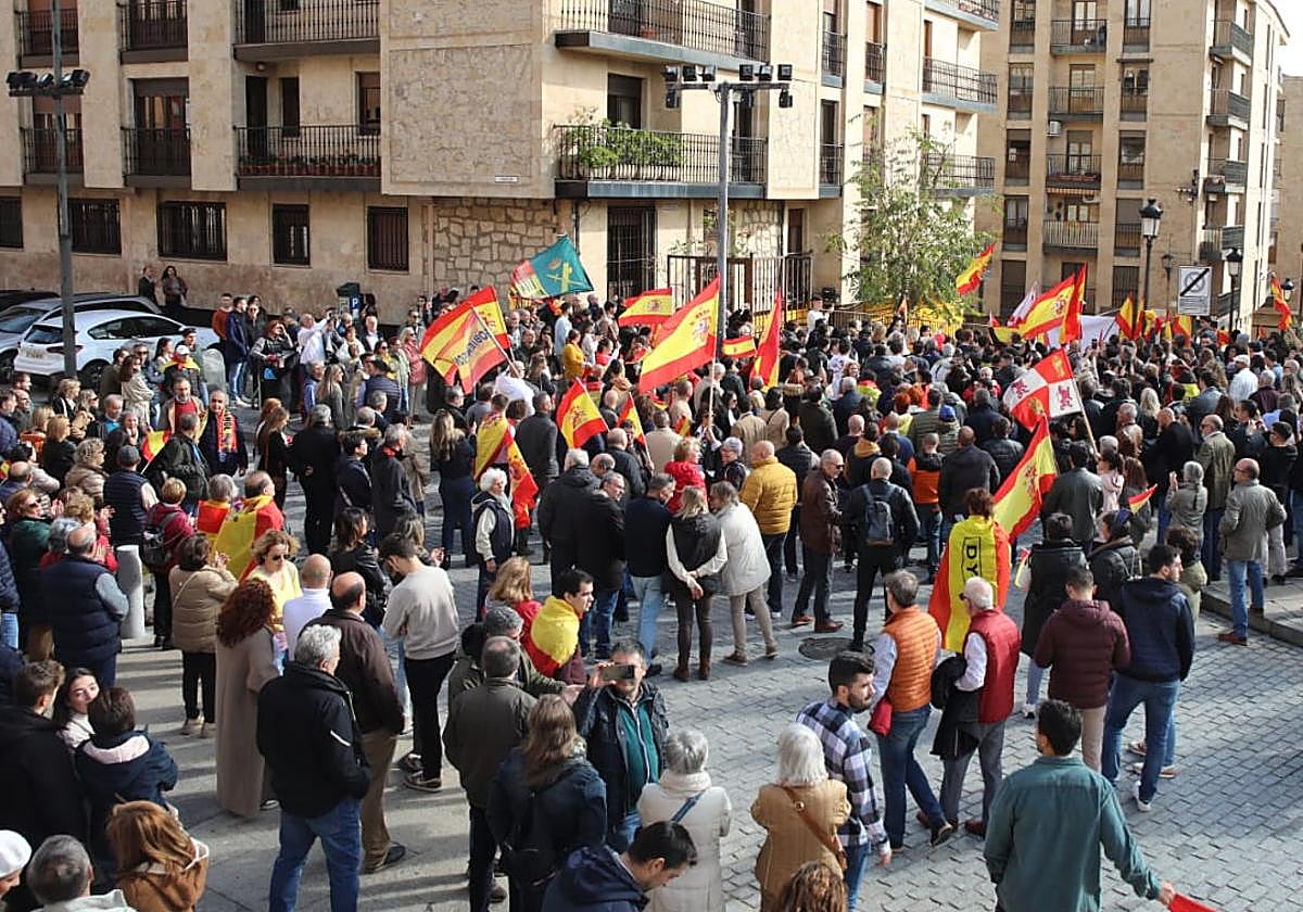 Una vez concluida la manifestación contra la amnistía convocada por el Partido Popular de Salamanca en la Plaza del Liceo y calles adyacentes -que ha reunido a 21.000 salmantinos-, VOX había citado una hora después a los manifestantes frente la sede del PSOE de Salamanca, situada en la Cuesta de San Blas, lugar en el que de madrugada algunos vándalos habían destrozado la placa identificativa socialista de metacrilato.