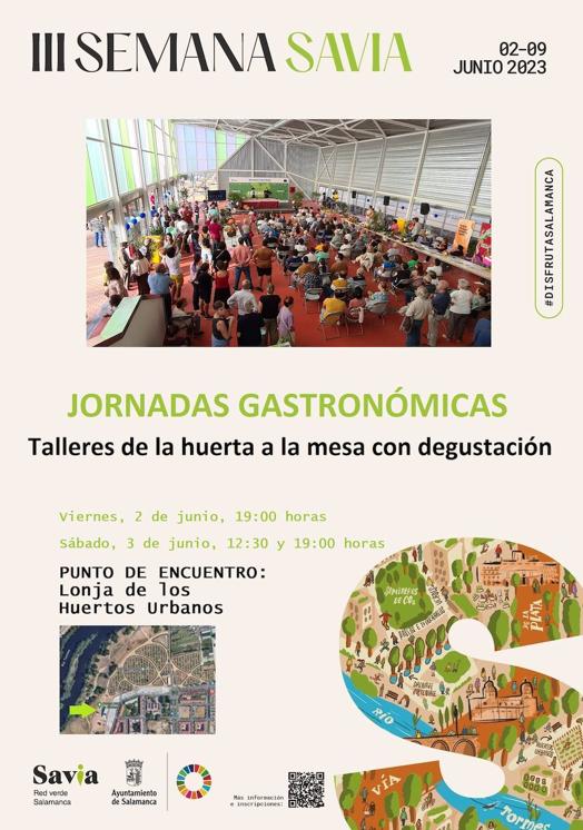 Mañana viernes, 2 de junio, de 17:00 a 18:30 horas, con inscripción previa en la página web la página web saviasalamanca.com, se desarrollará desde la Lonja el taller 'Biodiversidad en el espacio urbano', un recorrido por el parque de los Huertos Urbanos y la ribera del río Tormes. Posteriormente, de 19:00 a 20:00 horas, en el interior de la Lonja, con entrada libre hasta completar el aforo, habrá una demostración culinaria con degustación de productos de la huerta a cargo de Carlos Hernández, de ConSentido Restaurante, un Sol Guía Repsol y nominado al Premio Cocinero Revelación 2022 en Madrid Fusión.