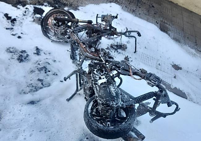 Una moto ha echado a arder en la Avenida Hilario Goyoenechea, en el barrio San José. Esta mañana, a las 10:00 horas, el vehículo estacionado en próximo al instituto Torres Villarroel ardía en llamas y acababa como un esqueleto completamente calcinada.