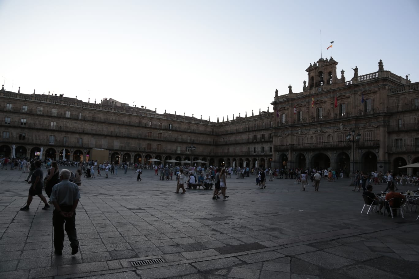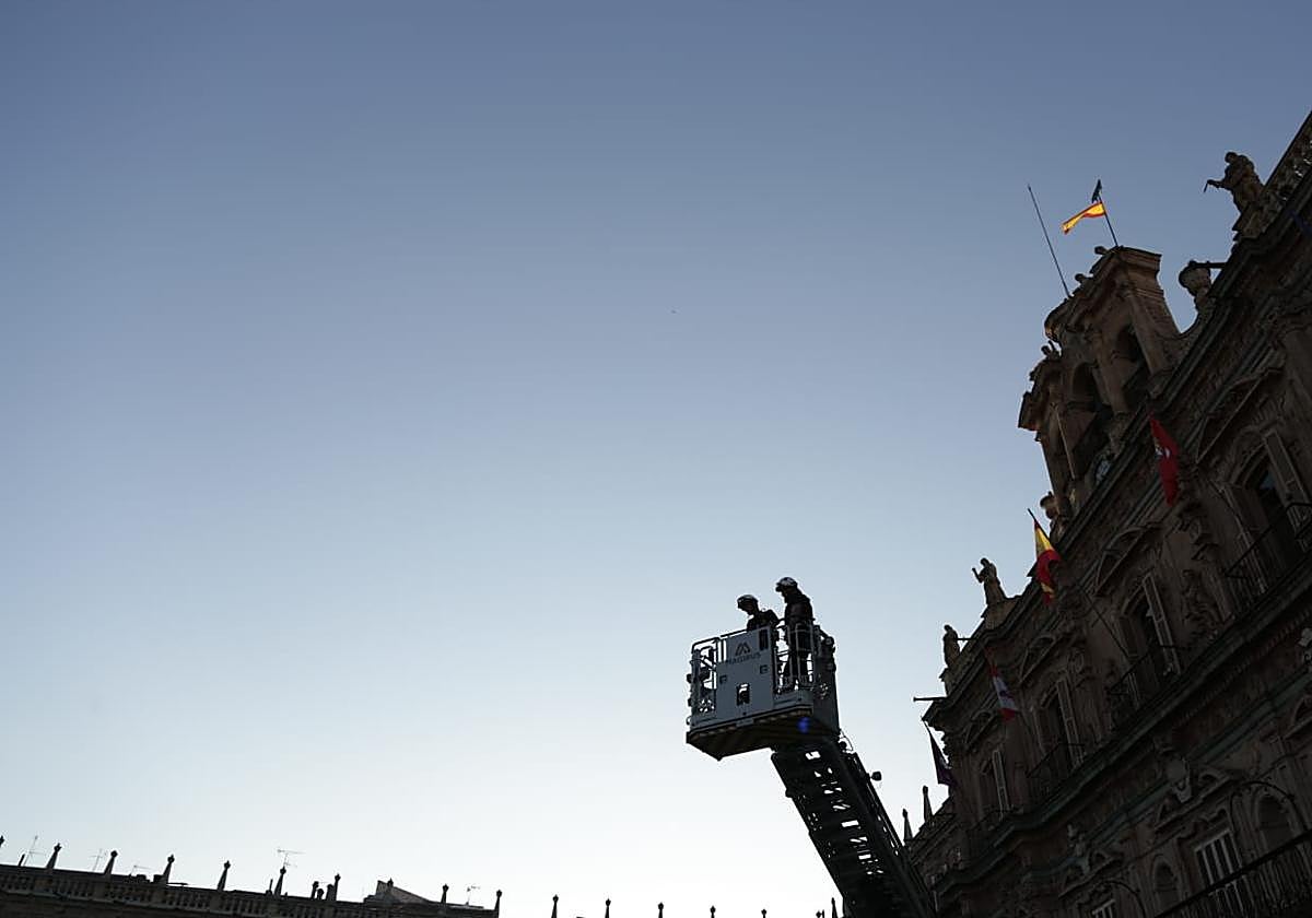 Cientos de personas han participado hoy en el acto de colocación de la Mariseca, que lucirá hasta el próximo 15 de septiembre, tras ser colocada por los bomberos de la ciudad, en lo alto de la Plaza Mayor de Salamanca para anunciar las Ferias y Fiestas que vivirá la capital del Tormes en septiembre, en honor a Santa María de la Vega. Este símbolo, colocado en la fachada del Consistorio, está compuesto por la bandera española y la silueta negra de un toro.