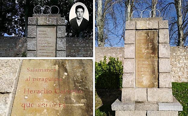 Se ponen en contacto con el Ayuntamiento para adecentar el monolito del paseo fluvial dedicado al piragüista salmantino muerto en 1971 tras volcar en la presa del Marín