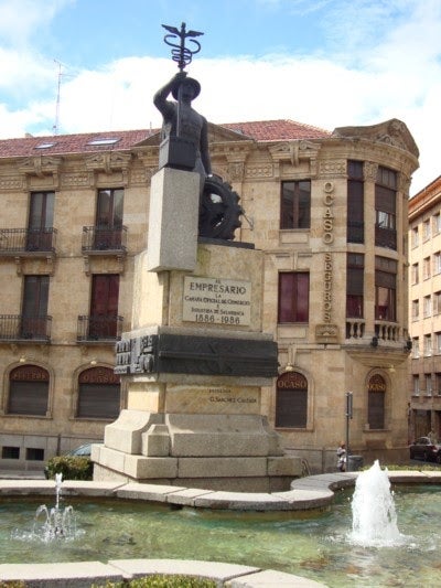 La escultura dedicada a Mercurio corona todavía un lugar con su historia. El 29 de junio 1986 se celebró el centenario de la Cámara de Comercio e Industria de Salamanca, que había convocado un concurso para homenajear al empresario. El ganador fue Gabriel Sánchez Calzada con esta escultura, Monumento al Empresario, situada en la Gran Vía salmantina.