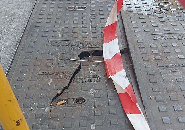Además, en la calle Ancha, hay dos vallas que señalizan una alcantarilla totalmente rota, suponiendo un peligro para los ciudadanos.
