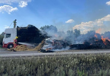 Un camión de paja en llamas obliga a cortar la A-62 a la altura de Tejadillo