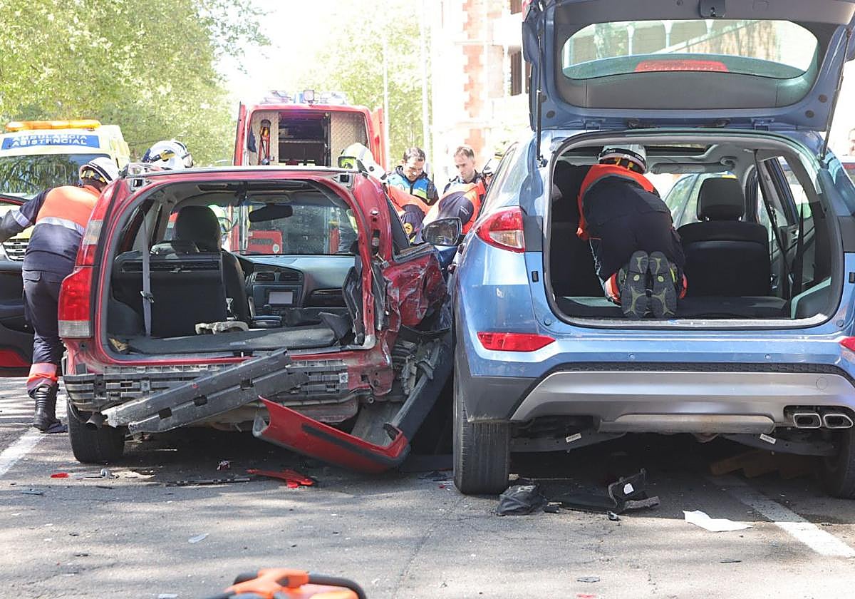 Hasta el lugar del suceso se han desplazado varias dotaciones de la Policía Local, hasta tres ambulancias y una decena de bomberos, que han tenido que auxiliar a una pareja que se encontraba en atrapada en el interior de uno de los vehículos afectados.