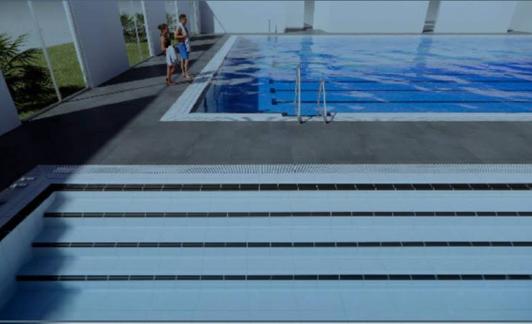 En cuanto a lo que a la piscina se refiere, se llevará a cabo la demolición de revestiminetos de suelo de las playas y paredes de la piscina para una posterior regularización e imperemeabilización. Además, la redistribución será distinta con el fin de mejorar tanto la funcionalidad como la accesibilidad. Por otra parte, el proyecto de reforma comprende la renovación del sistema de filtración y depuración de la piscina, instalando sistemas de filtración de alto rendimiento que reducen el consumo de agua. Además, se sustituirán las instalaciones de fontanería, electricidad, protección contra incendios, megafonía, telecomunicaciones y de gas.