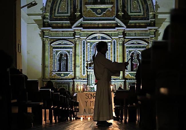 Al terminar la charla, el joven sacerdote del grupo, el padre Santiago, pone la custodia con la Hostia consagrada en el altar y se apagan las luces. Solo quedan encendidas unas velas en el altar. El sacerdote deja el altar para irse a la parte trasera de la iglesia, donde hay otro sacerdote, para encargarse ambos de las confesiones de todo aquel lo requiera. Arranca la Hora Santa.