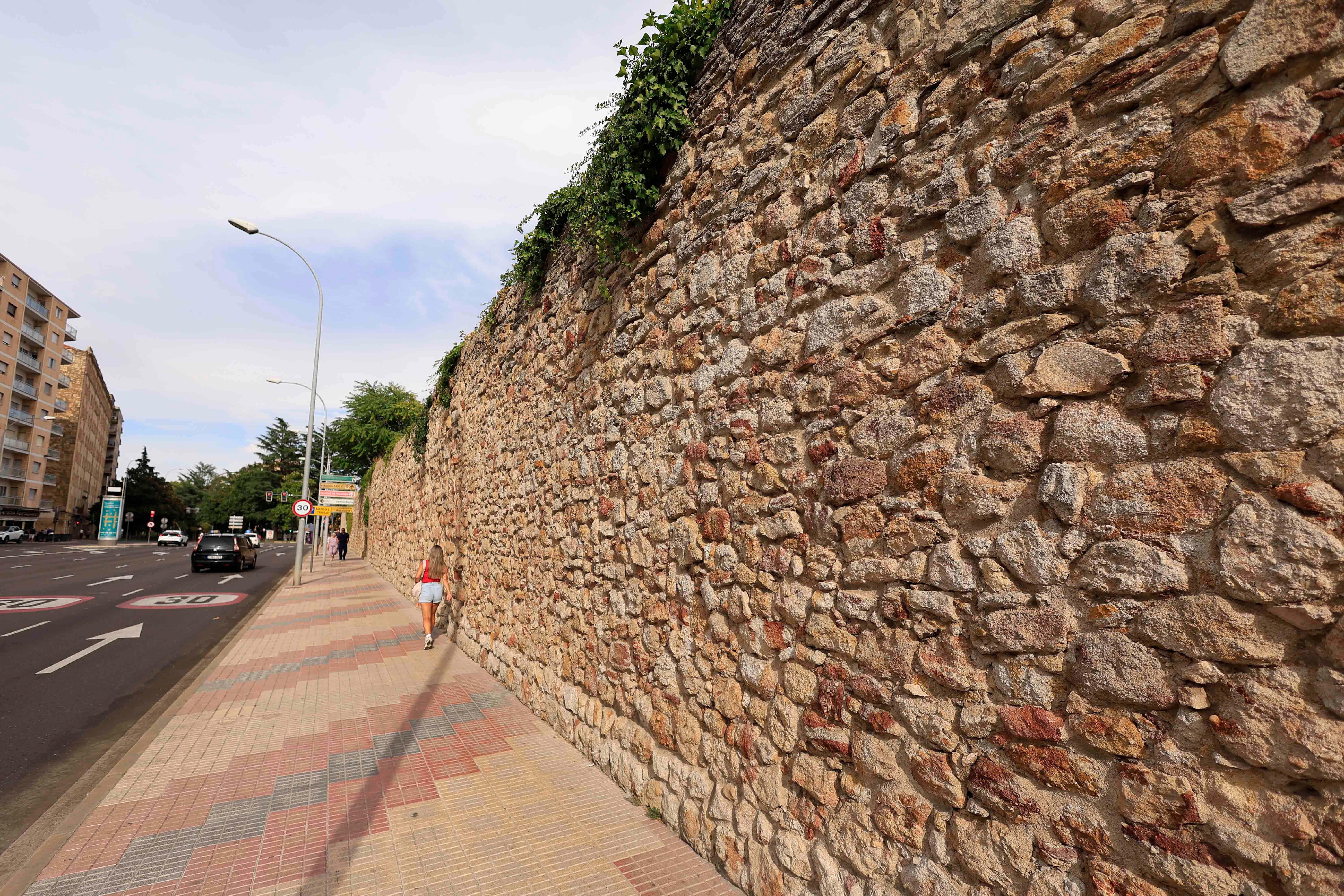 El Colegio colinda por la parte de atrás con restos de la muralla de Salamanca que se descubrieron durante trabajos de desescombro, los únicos vestigios que se conservan del tramo que unía la Puerta Falsa con el Portillo de San Bernardo. Esta puerta, conocida en un principio como Puerta de San Clemente por la proximidad de una ermita del mismo nombre, pasó a llamarse Puerta de San Hilario en 1320, tras levantarse otra ermita intramuros que más tarde fue derribada para construir el Colegio Mayor del Arzobispo Fonseca. El apelativo de Puerta Falsa se adoptó en 1469, cuando el conde de Alba intentó penetrar en la ciudad de forma inesperada por este acceso, desencadenando una sangrienta batalla en la que los salmantinos lograron repeler el ataque.