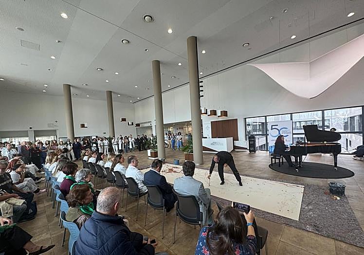 Un viaje sonoro en memoria de los 50 años vividos en el hospital; y Juan Sebastián González, artista, doctor en Bellas Artes, profesor e investigador de la Facultad de Bellas Artes de la Universidad de Salamanca, que ha realizado un acto performativo efímero en celebración de la vida en constante cambio, uniendo el alma vibrante de la tierra y la fragilidad de lo humano, con las notas musicales de las canciones archiconocidas de un repertorio que buscaba emocionar desde el recuerdo.