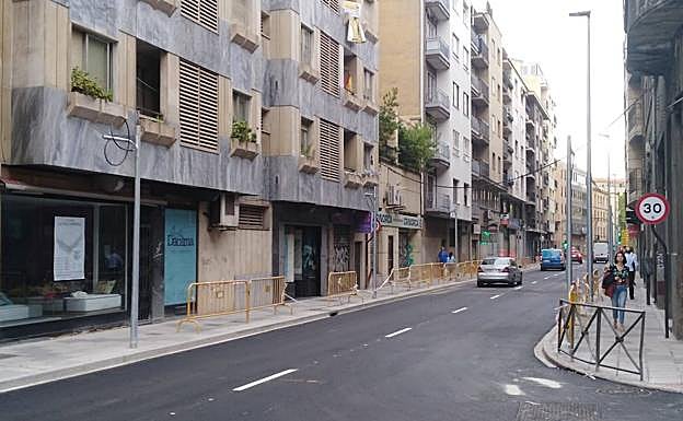 La calle volvió a ver circular coches el pasado 12 de septiembre tras prolongar sus obras mucho más allá de lo previsto por el hallazgo de restos de una antigua conducción de agua. Catalogados y fotografiados, se procedió a cubrirlos de nuevo, pero para entonces la obra ya acumulaba un importante retraso. Se abrió al tráfico, pero a falta de completar algunos detalles, entre ellos, el que le va a dar un toque 'verde' que, poco a poco, se va a ir extendiendo por la ciudad.