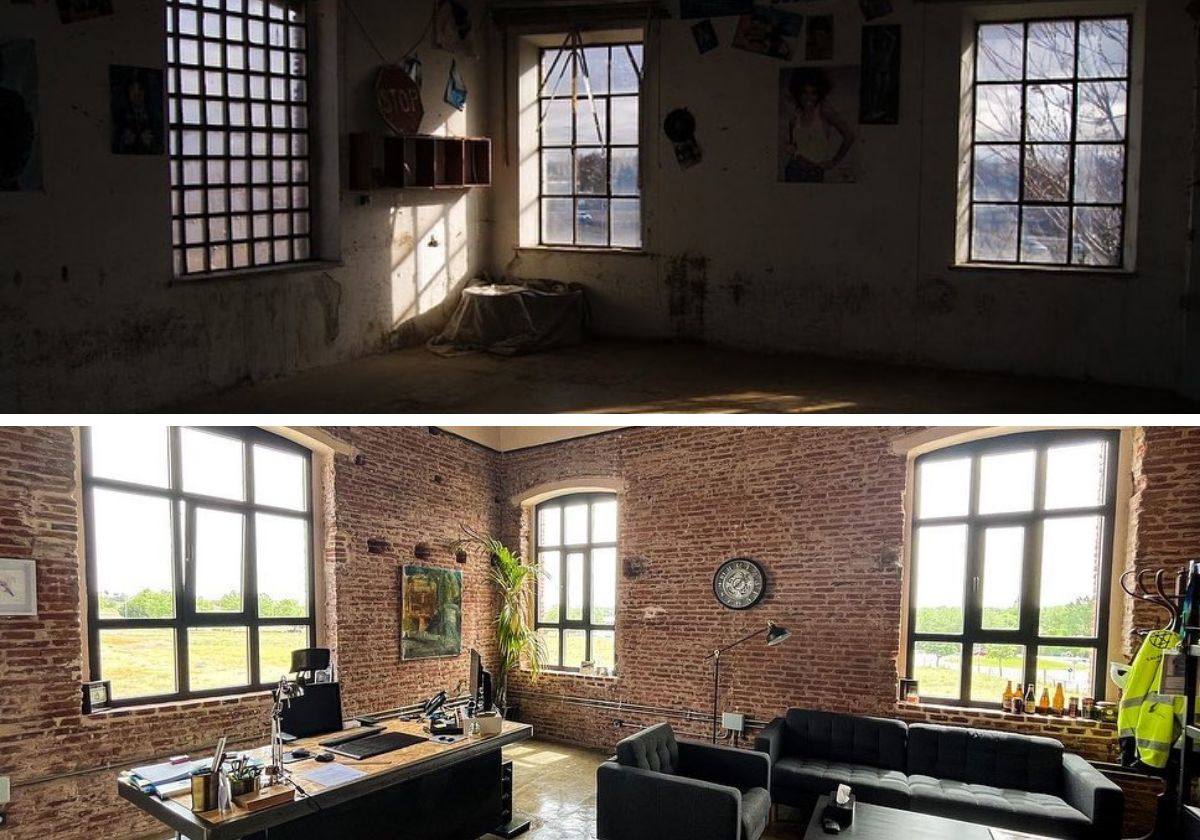 El edificio, de 1874, fue primera estación de impulsión de agua, industria química y sede de una empresa de muebles antes de sufrir el abandono: tras una profunda rehabilitación es una moderna y estilosa oficina