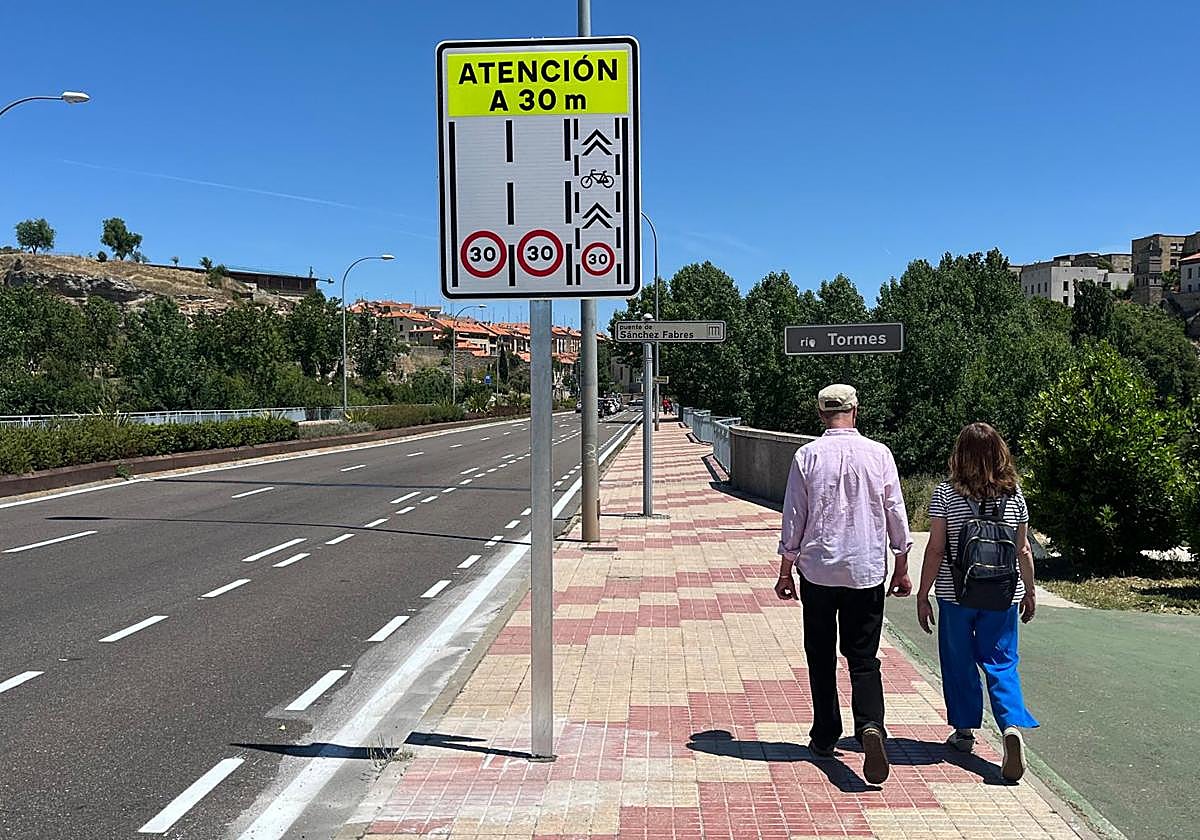 No es la primera vez que se utiliza este tipo de carril de uso compartido en Salamanca: así ya están utilizándose tanto en Comuneros como en el viaducto de la calle Río Miño de la capital charra.