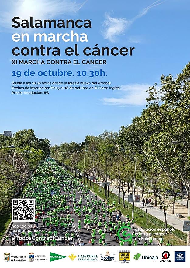 La inscripción, cuyo precio es de 8 euros con camiseta incluida, se podrá realizar de manera presencial en El Corte Inglés, desde el 9 de octubre, en horario de 10:30 a 13:30 horas y de 17:00 a 20:00 horas, hasta el 18 de octubre. Antes del inicio de la marcha en el stand ubicado en la salida o a través del código QR del cartel.