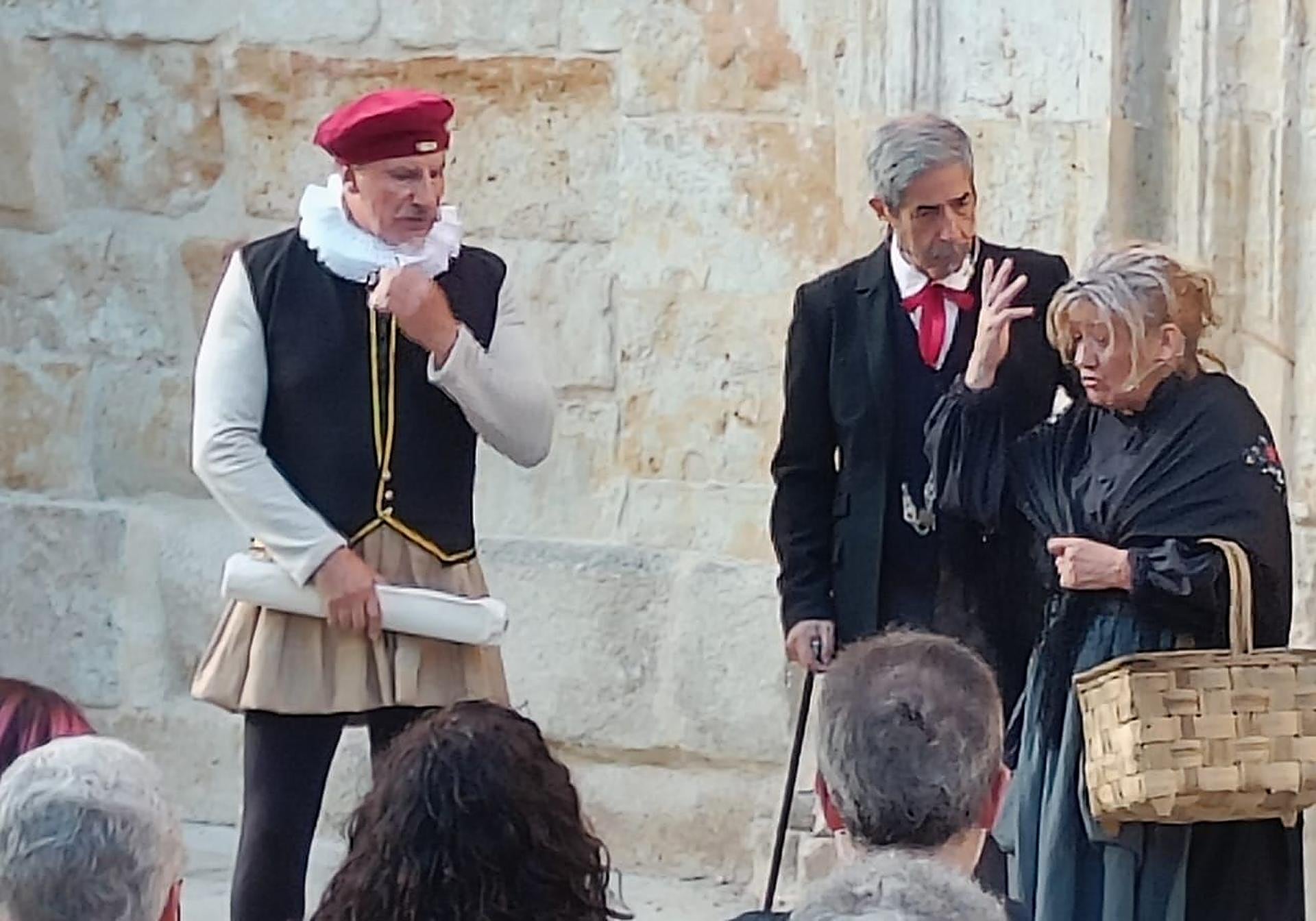 Romana, 'la Merenguera', recorre las plazas y patios de la ciudad como cada día y, aunque los años y los achaques no perdonan, sigue pregonando su mercancía. En su recorrido aparece don Juan con un acompañante forastero que, al parecer, tiene intención de trasladarse a Salamanca. Don Juan le ha ofertado a don Alfonso (El forastero) una magnífica finca del siglo XVI a un precio muy interesante, pero la Merenguera, muy dada al cotilleo, informa a don Alfonso de las leyendas que de esa vivienda, la Casa de las Muertes, se cuentan.