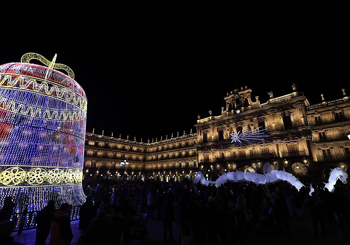 Salamanca ha encendido la Navidad este martes con la puesta en marcha de la iluminación prevista para las próximas fechas que ambientará la ciudad junto con las actividades previstas, algunas novedosas como un 'videomapping', un pasacalles, el mercado navideño y un espectáculo en el Huerto de Calixto y Melibea.