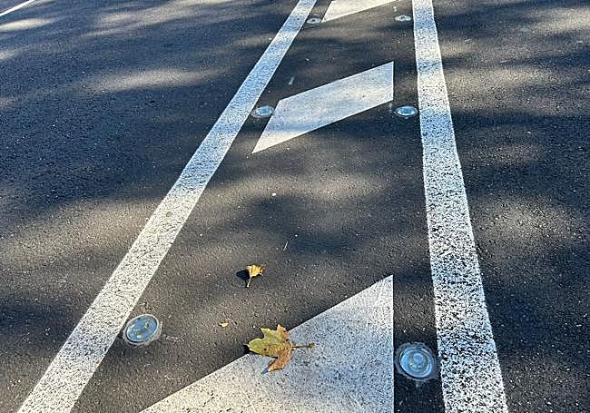 El ayuntamiento instala una hilera de led sobre la calzada que se ilumina del mismo color que el semáforo de un paso de peatones cercano al Hospital