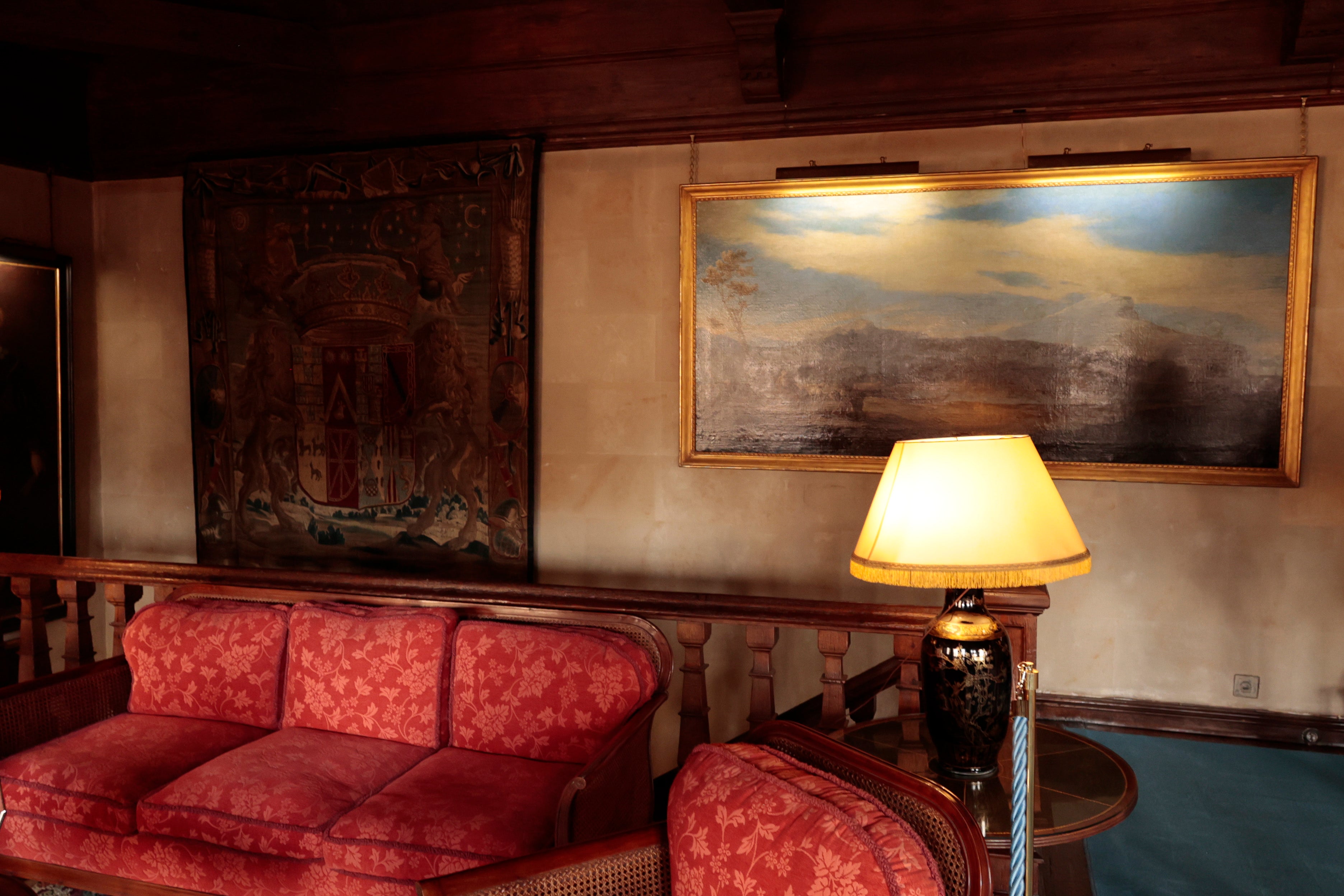 Más pequeño y sobrio que el salón principal, este espacio de uso privado ofrece un ambiente cálido y acogedor. Probablemente era la estancia más utilizada por doña Cayetana, ya que cumple la función de cuarto de estar diario, en contrastre con el salón principal reservado para recepciones y reuniones formales.