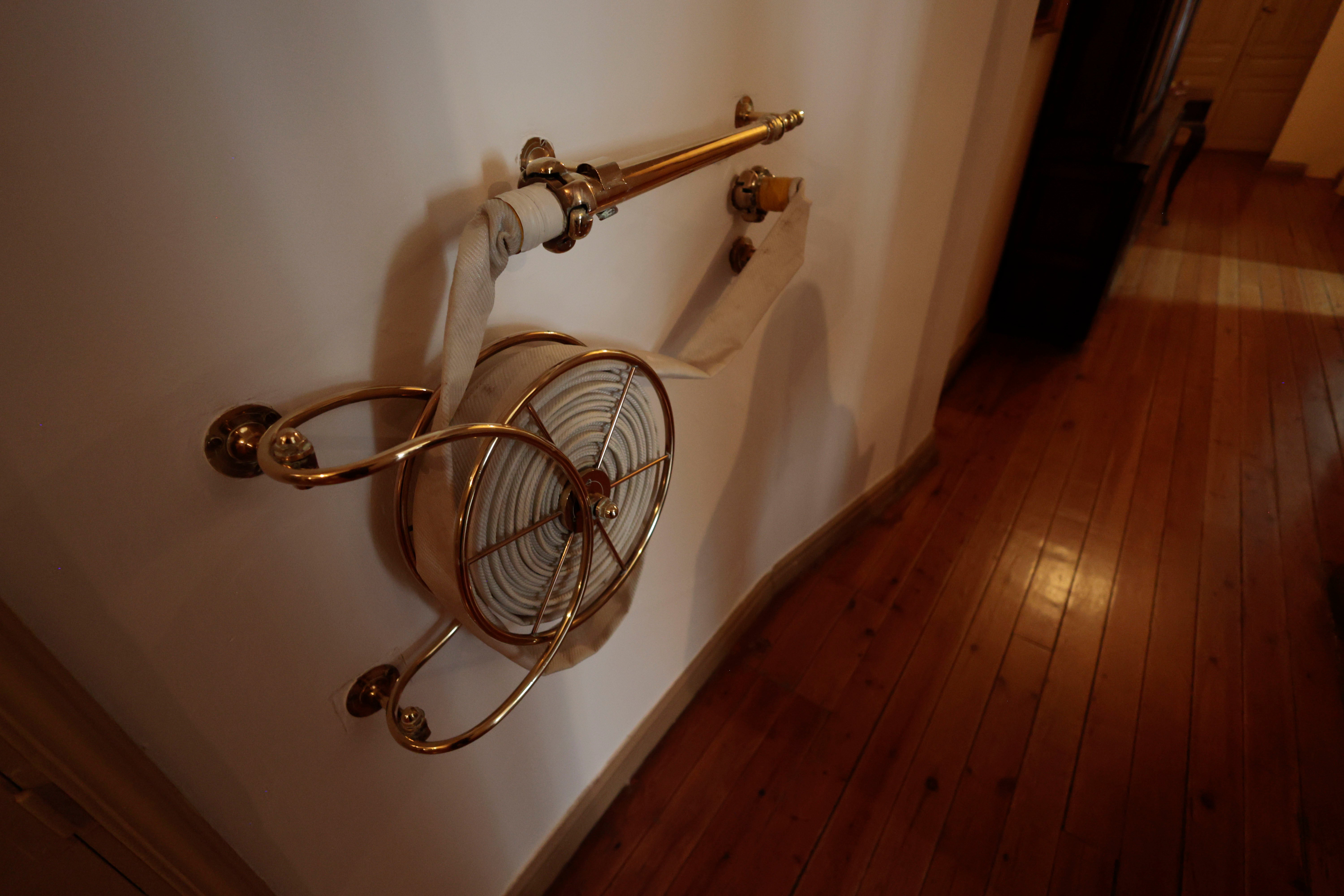 Mangueras antiincendios: cuando aún no existían los extintores ya había una legalidad contra incendios y se exigía que ciertos edificios de gran magnitud tuvieran mangueras antiincendios. Por eso, el palacio conserva todavía las originales de época repartidas por los diferentes pasillos.