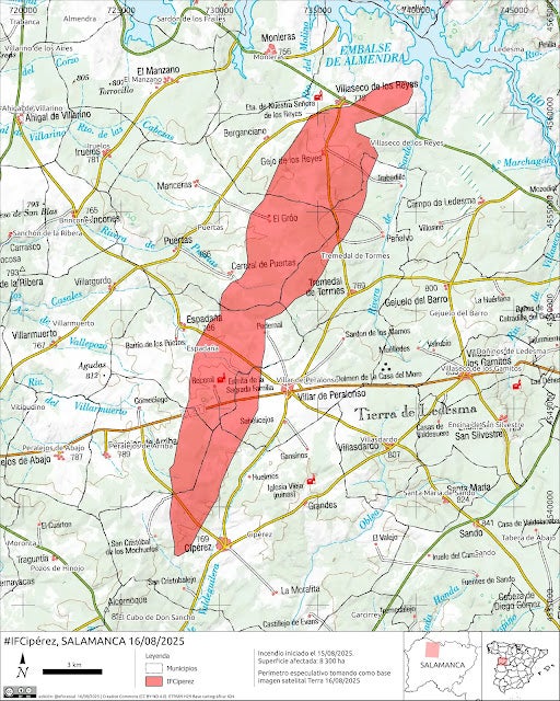 Dieciséis municipios y pedanías de Salamanca afectados este verano por grandes incendios forestales. Cipérez, Huelmos, San Cristóbal de los Mochuelos, Becerril, Espadaña, Pedernal, Peralejos de Arriba, Cerezal de Puertas, El Gróo, Peñalvo, Trabadillo, Tremedal de Tormes, Villar de Peraloso, Bercanciano, Gejo de los Reyes y Villaseco de los Reyes. Un total de 11.000 hectáreas quemadas según las mediciones realizadas por Forestry. Pueblos confinados, vecinos aislados, casas arrasadas, grandes pérdidas económicas y un entorno que no volverá a ser el mismo.