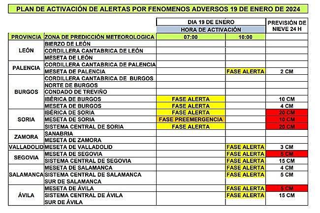 Además, a eso de las 9:45 horas la Delegación del Gobierno ha ampliado amplia la fase de alerta al Sistema Central de Salamanca. De esta forma, son 12 áreas las que están en alerta y Soria en Preemergencia.