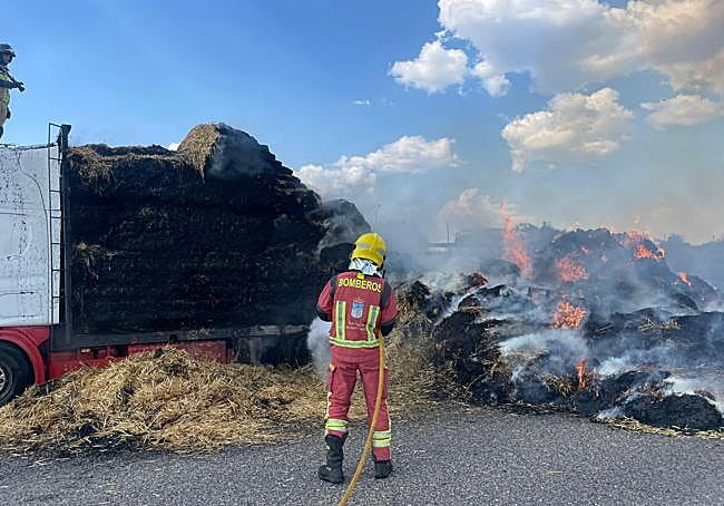 Un camión de paja en llamas obliga a cortar la A-62 a la altura de Tejadillo
