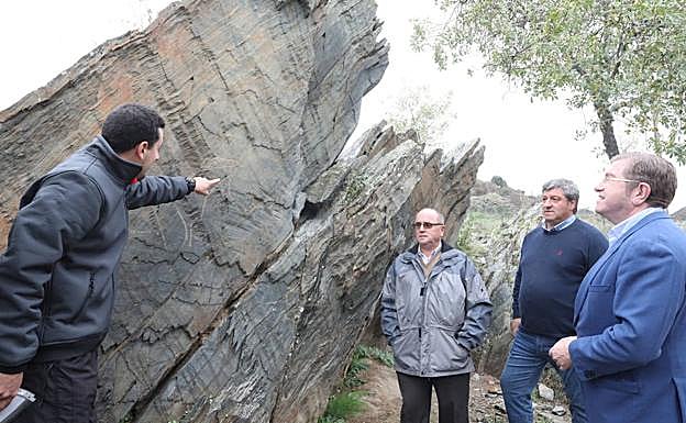 Sendos directores generales, junto con los patronos de la FSV -Luis Miguel Baz (presidente y alcalde de Villar de la Yegua), Luis Ángel Moro (vicepresidente y alcalde de Villar de Argañán) e Isidoro Alanís (alcalde de Fuentes de Oñoro)- el director de la Fundación, Luis Ballesteros, y el coordinador de guías, Alejandro Fonseca, recorrieron el yacimiento y comprobaron las mejoras acometidas en los últimos meses. También estuvo presente la teniente de alcalde del Ayuntamiento de Fuentes de Oñoro, Susana Pérez.