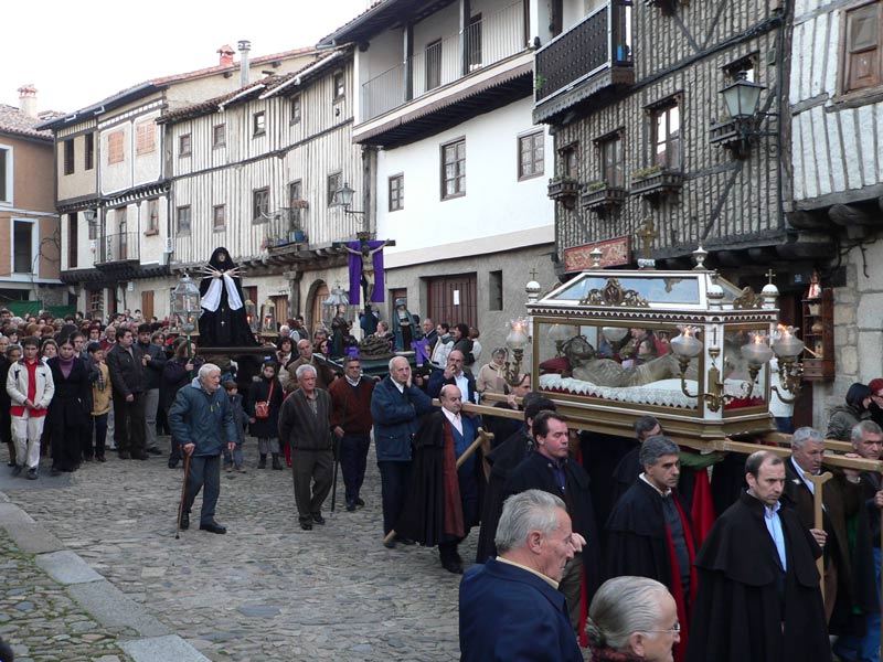 La Alberca es el primer pueblo español declarado Conjunto Histórico en 1940 y sus calles y entramado urbano forman una estampa inigualable en el recorrido de sus procesiones. En él destaca la belleza y conservación de su arquitectura tradicional típica serrana, heredada de la época medieval. Así, el Viernes Santo por la mañana se celebra el tradicional Vía Crucis por las calles de la localidad con la imagen grotesca del Juita que tira del Ecce Homo, la madre Dolorosa y un Calvario del siglo XV; por la tarde se celebra la procesión del Santo Entierro y llegada la medianoche la procesión de la Virgen de los Dolores, plenamente en silencio.